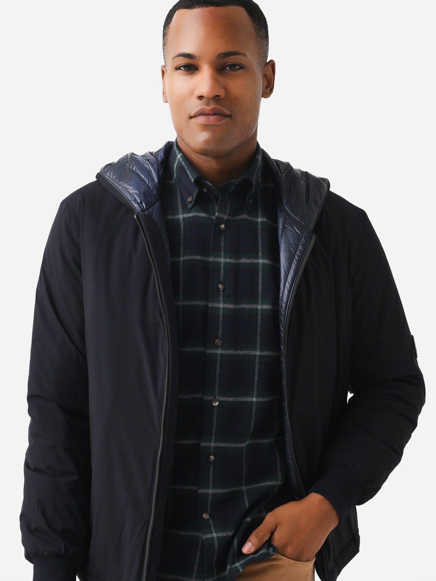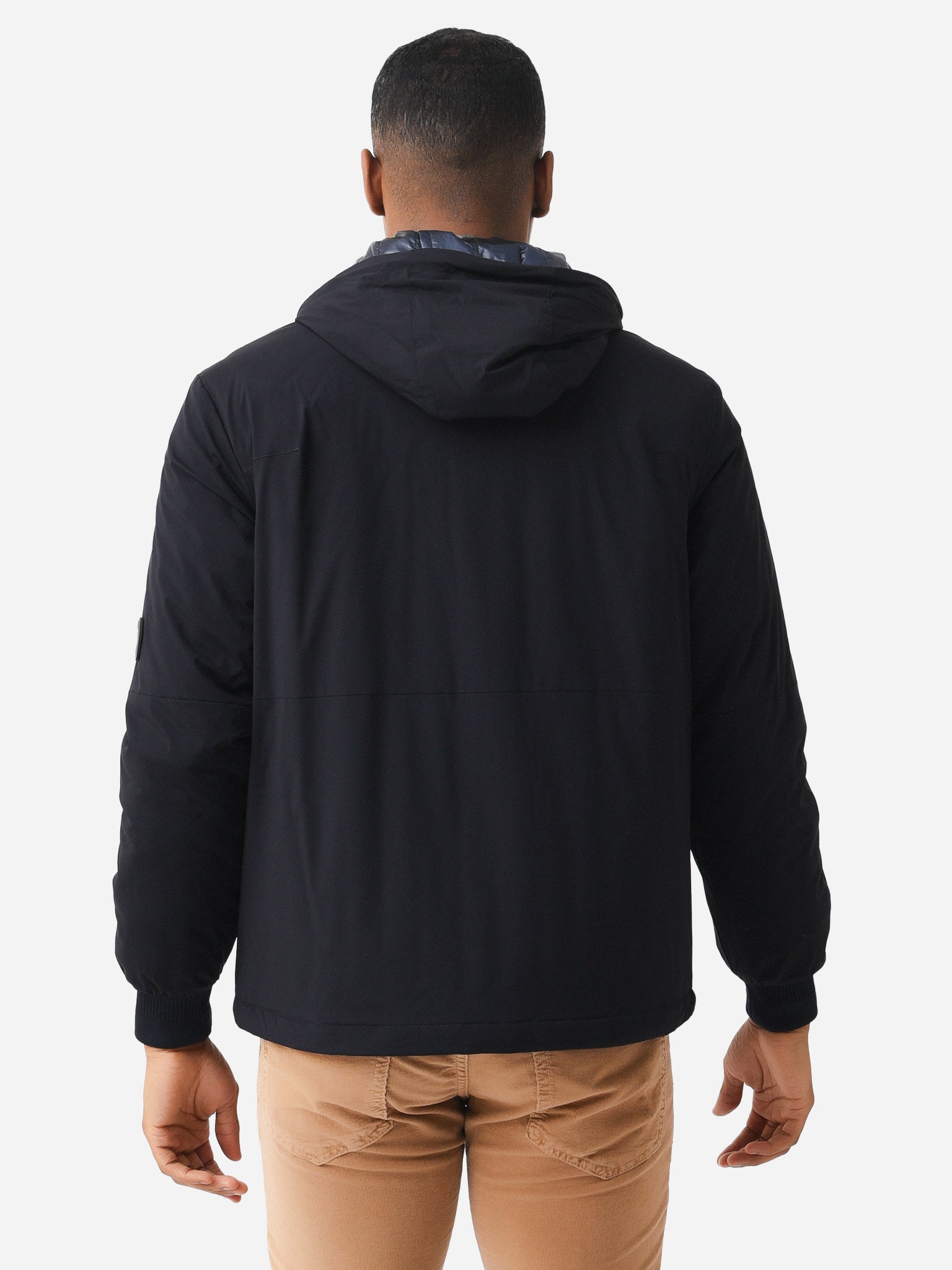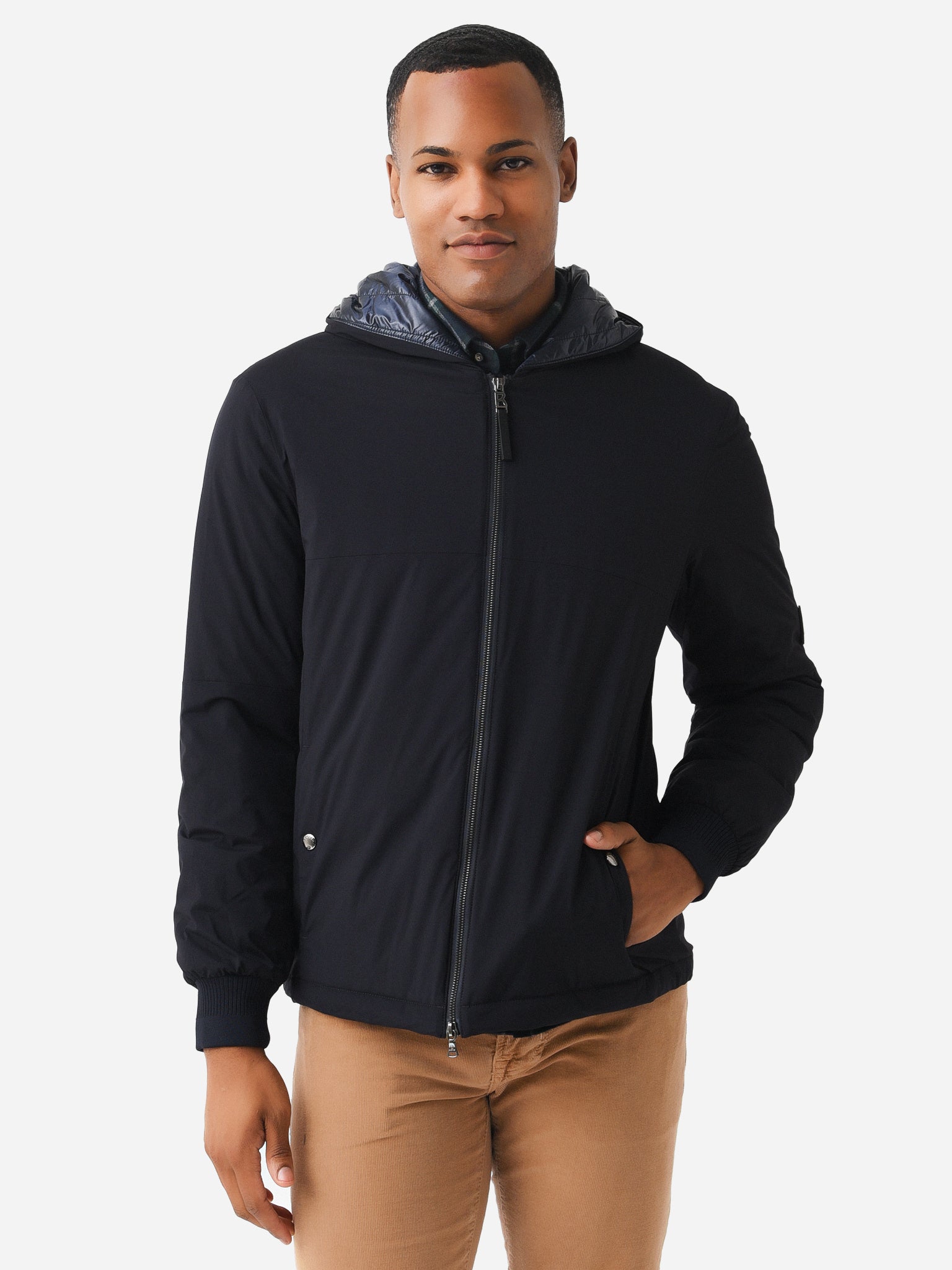 Casual jacket with a two-way zip closure and synthetic insulation.