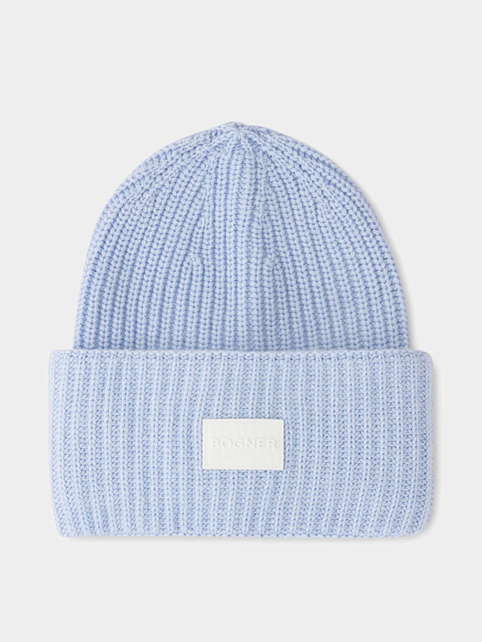 Blending urban style with comfort, the Lahra hat features a statement nylon-rubber patch. Its cozy design uses a fine mix of virgin wool and cashmere for a luxuriously soft feel.