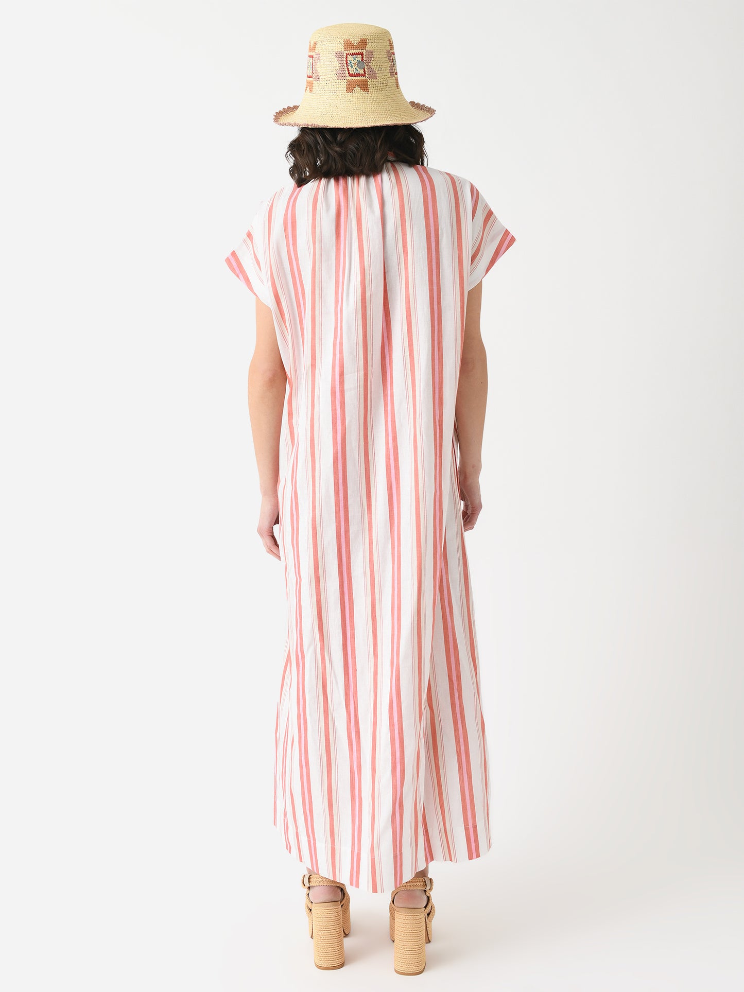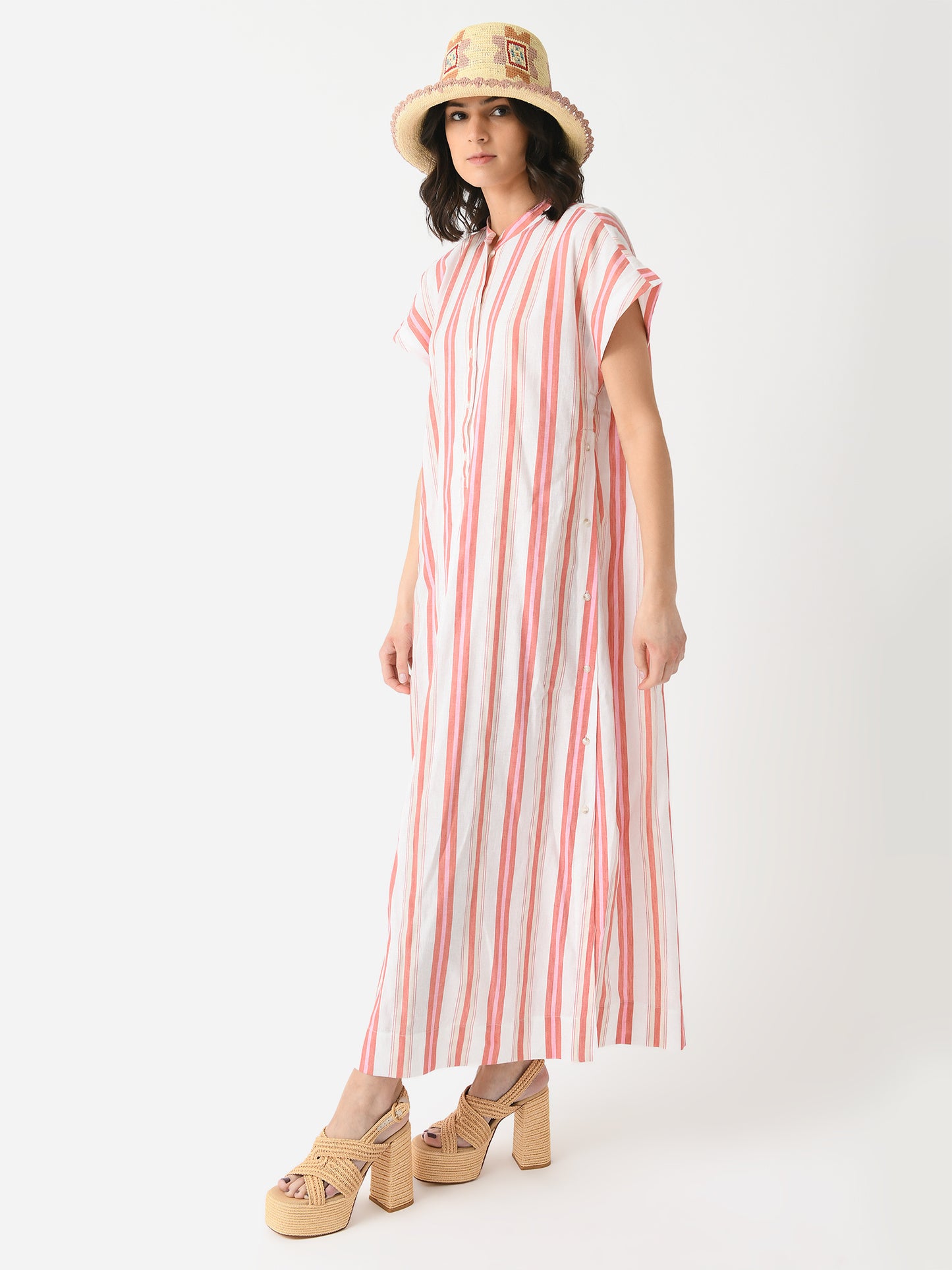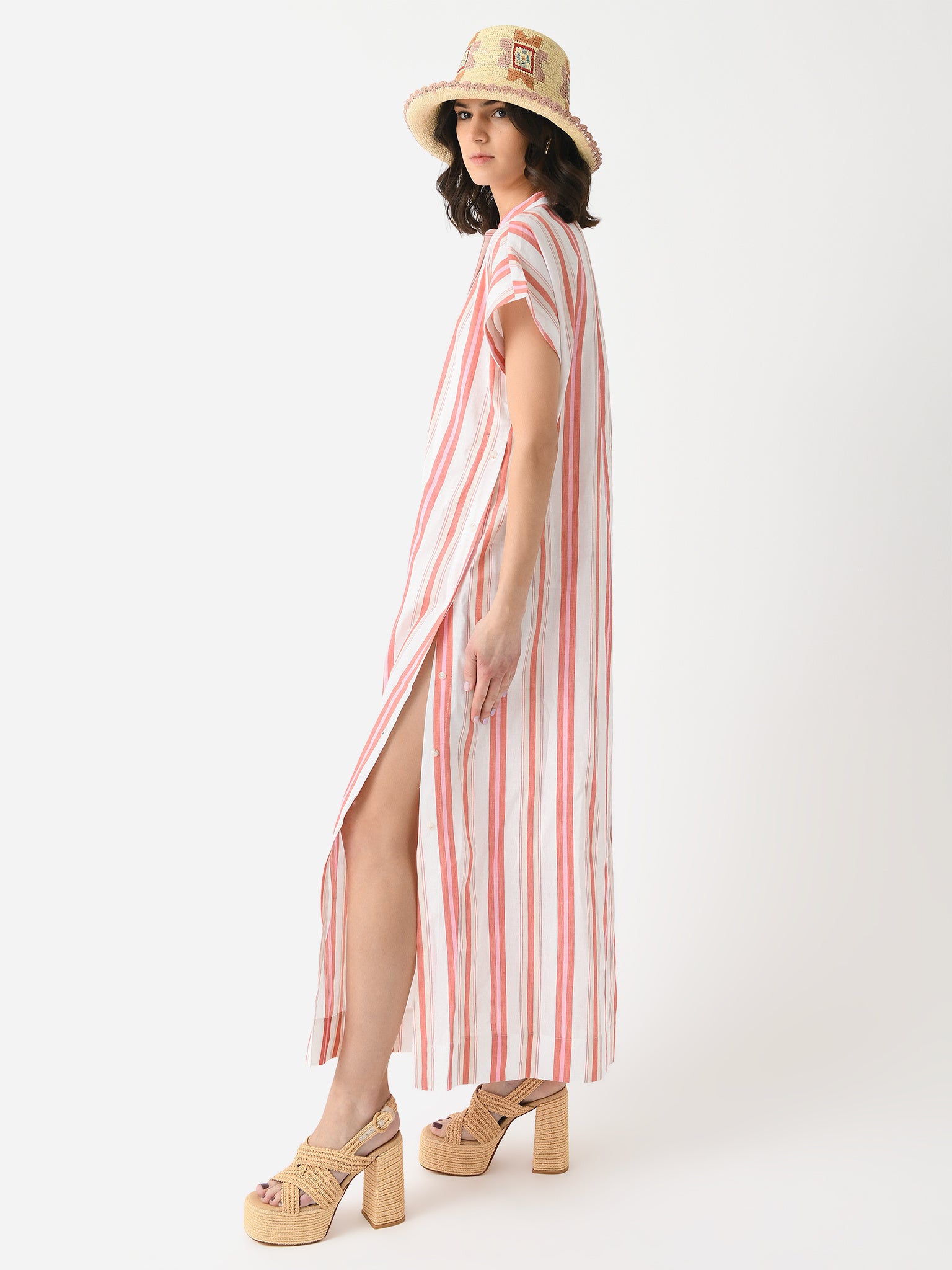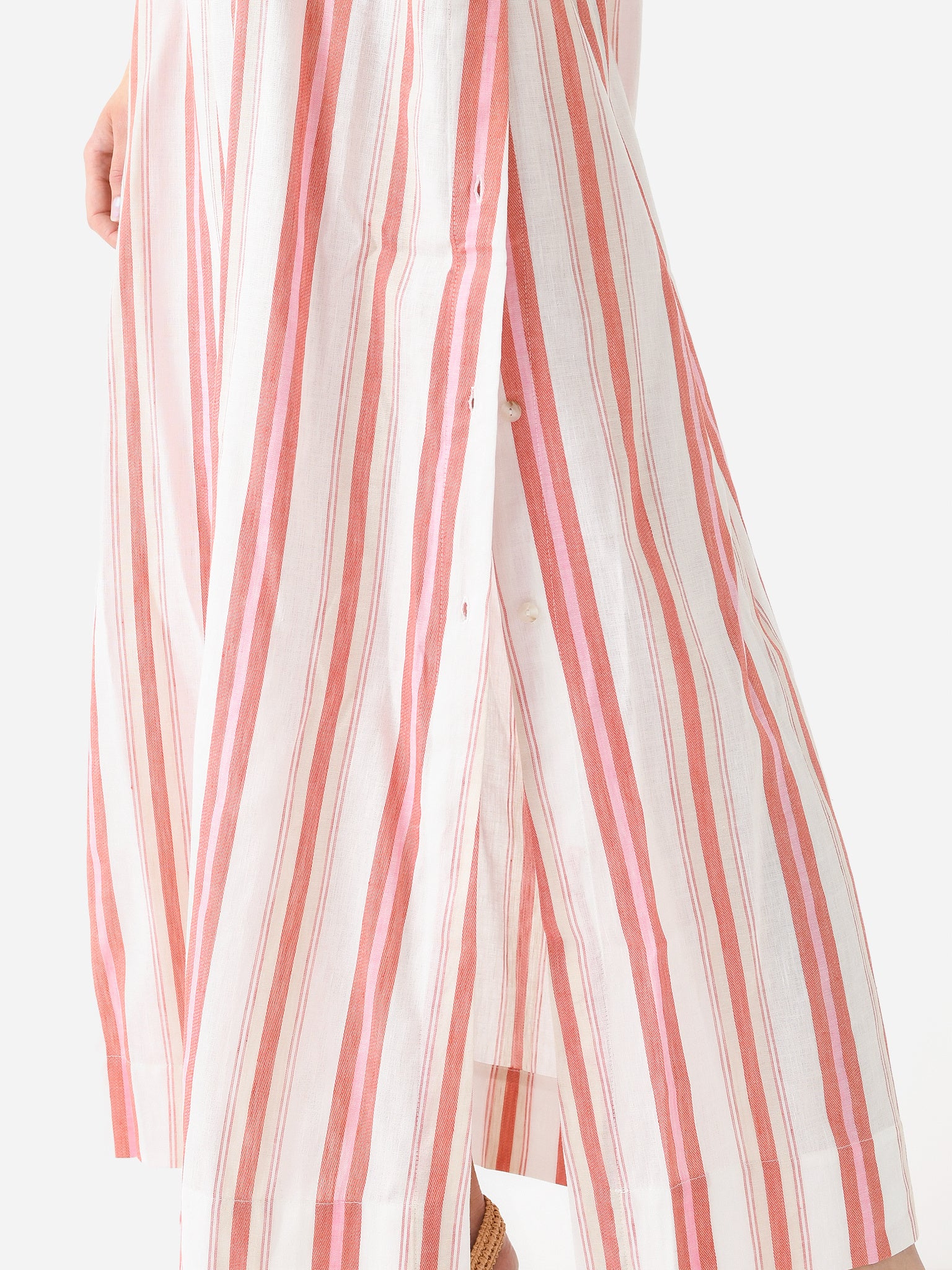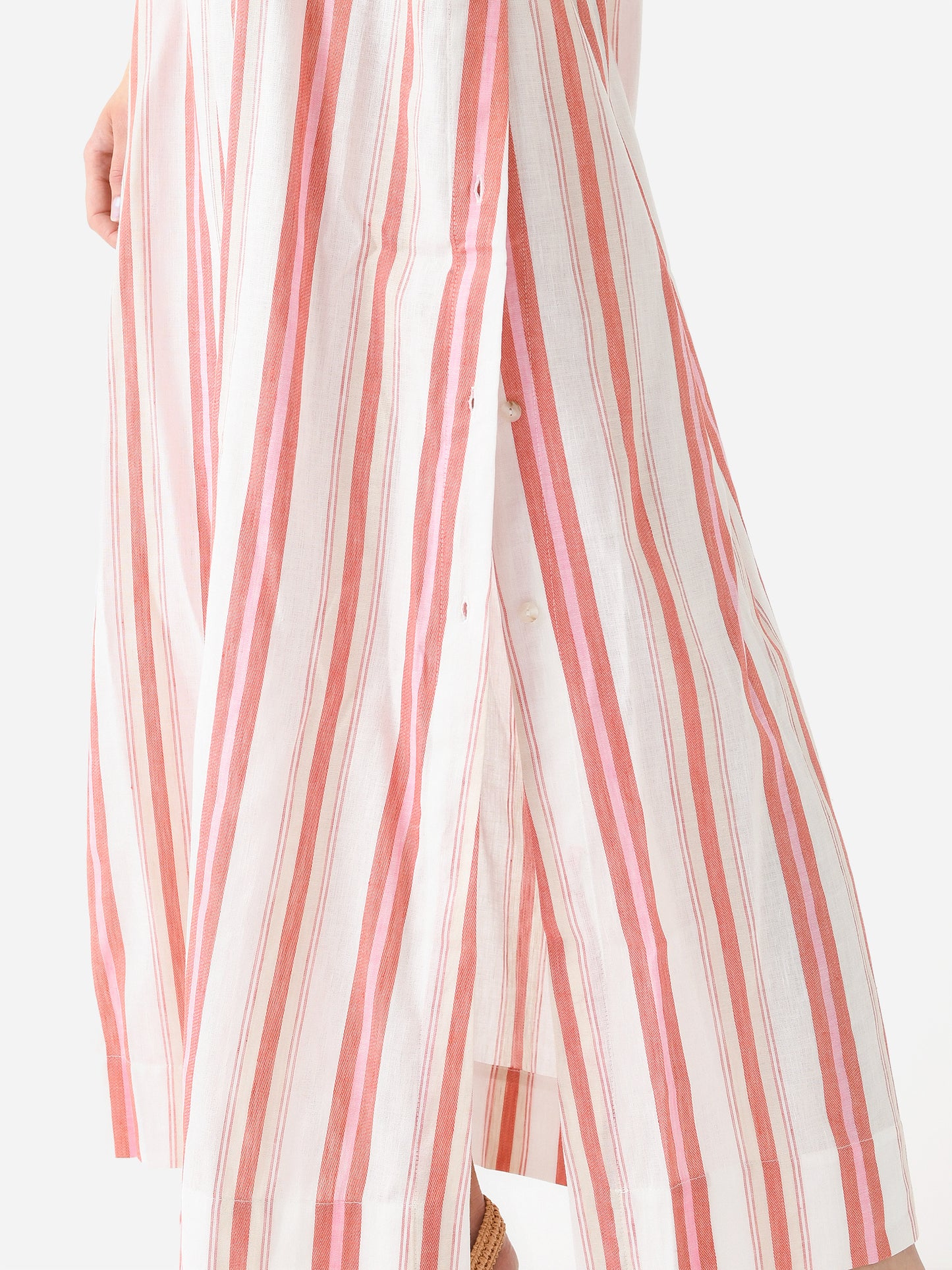 A long cover-up made from a lightweight linen-cotton blend with a bright stripe print and statement side splits.