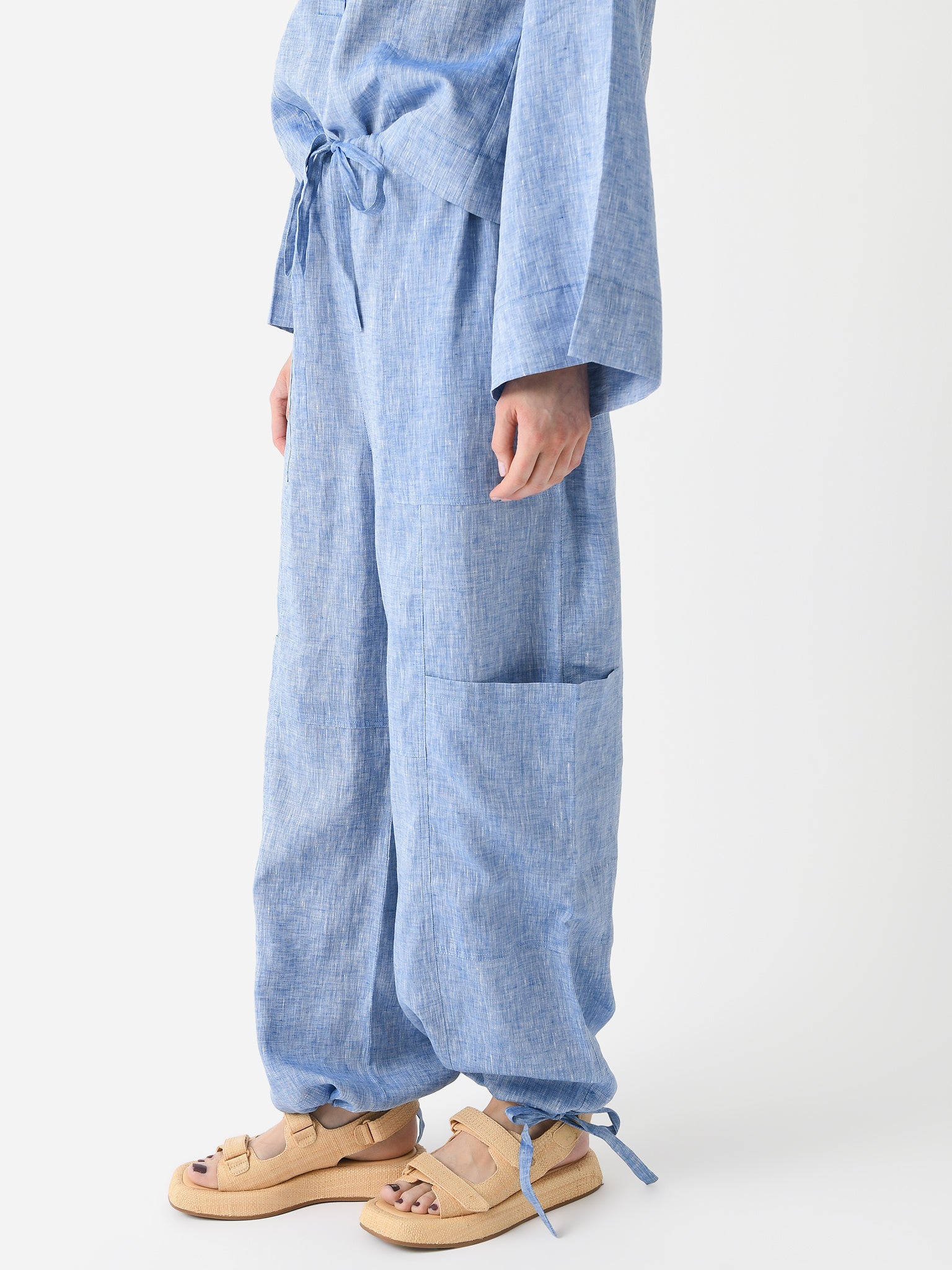 A wide-leg pant made from lightweight linen fabric with a cool cargo-inspired design.