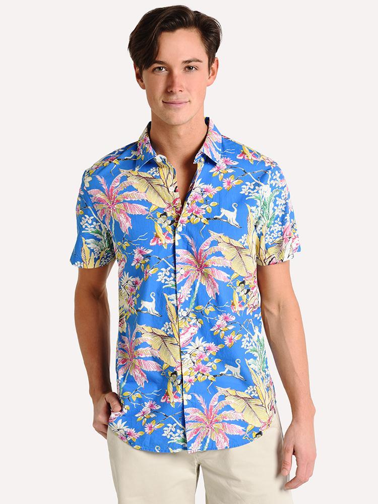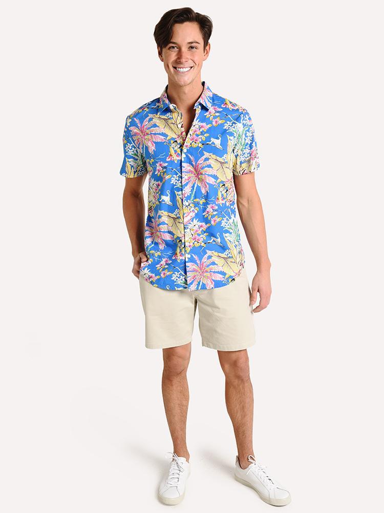 The Bonobos Amalfi Premium Short Sleeve Shirt features a picturesque, tropical scene for your everyday adventures.