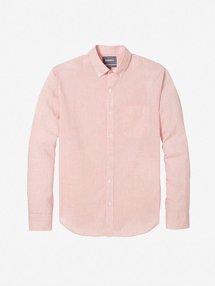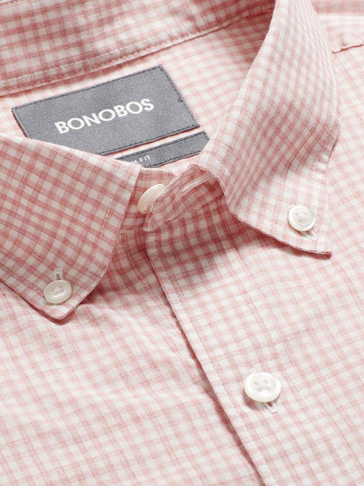 Stay cool out on the patio this season in the Bonobos Heather Pink Mini Gingham Summer Weight Shirt