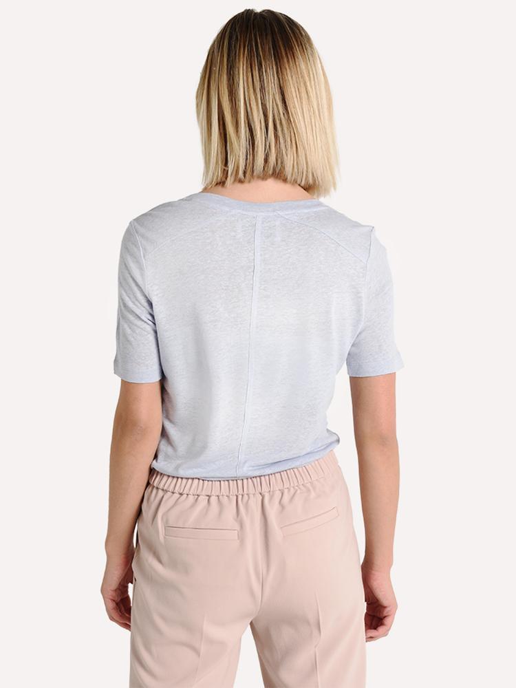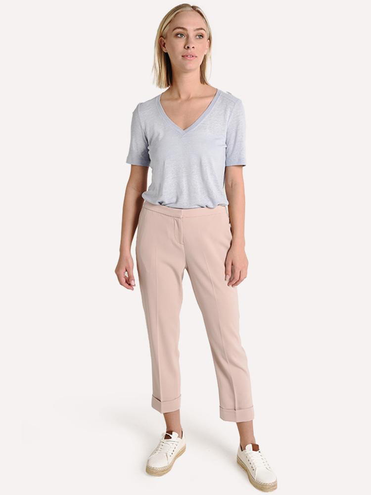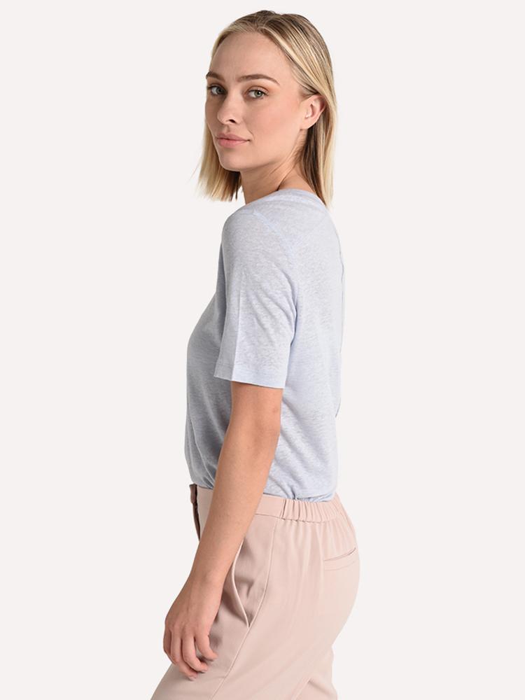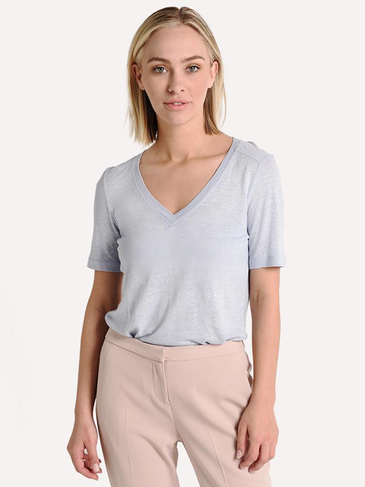 This classic deep V slim fit staple t-shirt is made in the most comfortable linen blend knit. This transitional piece is an all year round must have. An effortless closet mainstay, tucked into a trouser or layered under a cami dress.