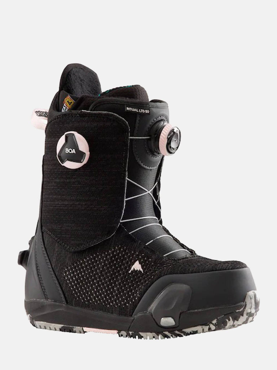 One look at the women's Burton Ritual LTD Step On® Snowboard Boots and you know they are in a league of their own. Compatible with Burton's Step On system, they offer precise board control and seamless transitions in and out of your bindings. Their engineered woven construction creates lasting, powerful support and water-resistance. Its medium flex yields a playful yet responsive feel that's great tearing through glades and natural halfpipes. To make sure your feet stay warm and dry, the liner wicks moisture while trapping body heat for warmth that lasts all day. These boots are only compatible with Step On bindings.