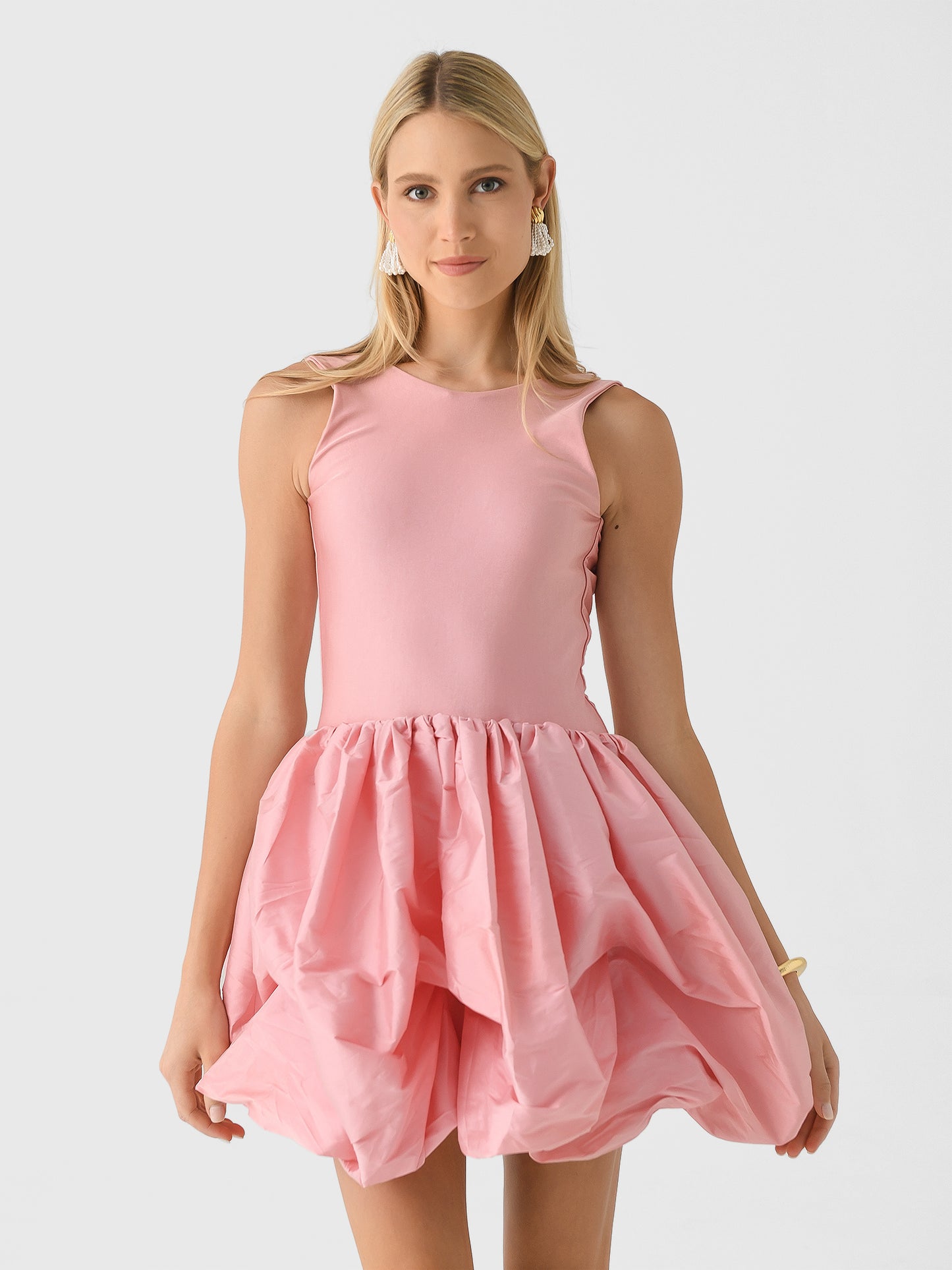 This mini dress is made from midweight silky fabric and features an open-back design and a voluminous bubble hem.