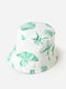 Fully reversible bucket hat featuring a shell and cabana stripe print.