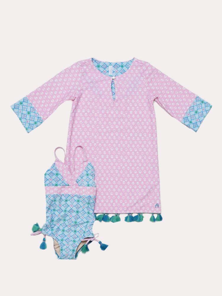 She's ready for her next beach trip in the Cabana Life Girls' Swimsuit And Coverup Set