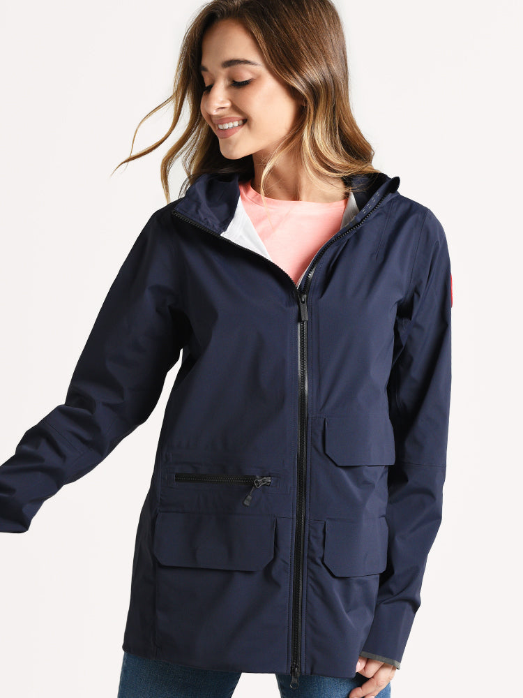 The Canada Goose Women's Pacifica Jacket helps you brave the storms and keep you going with its breathable tri-durance fabric and fully seam-sealed design.