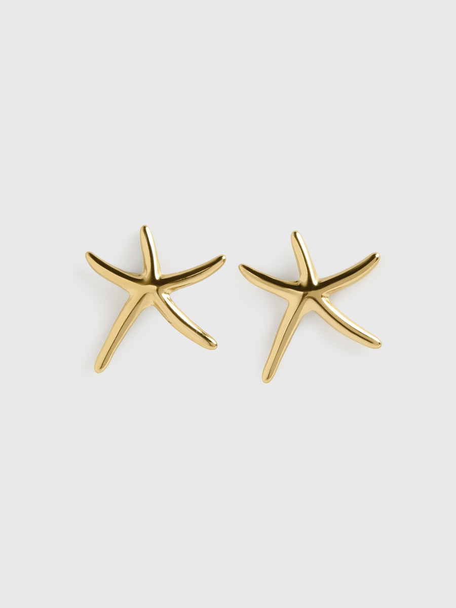 These elegant stud earrings are a stylish and modern take on a classic starfish design. The polished gold tone gives them a sleek, bright finish, while the simple silhouette makes them a versatile accessory for any occasion.
