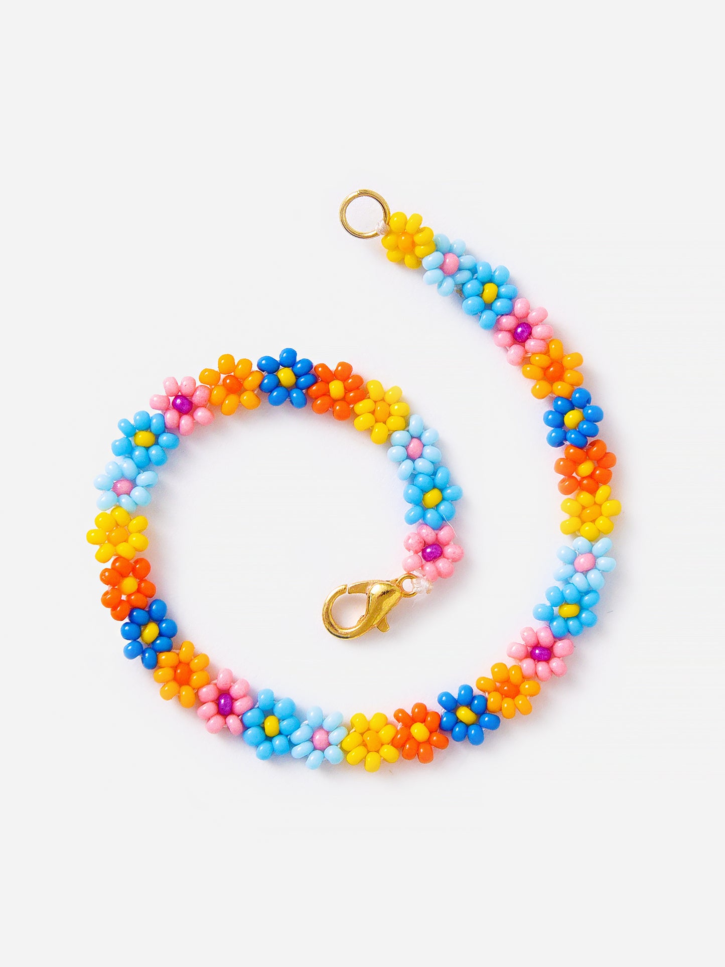 Beaded bracelet with 3D flower charms.