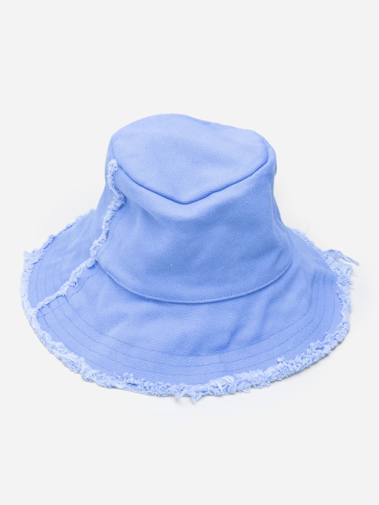 Mid-weight cotton canvas bucket hat with frayed details.
