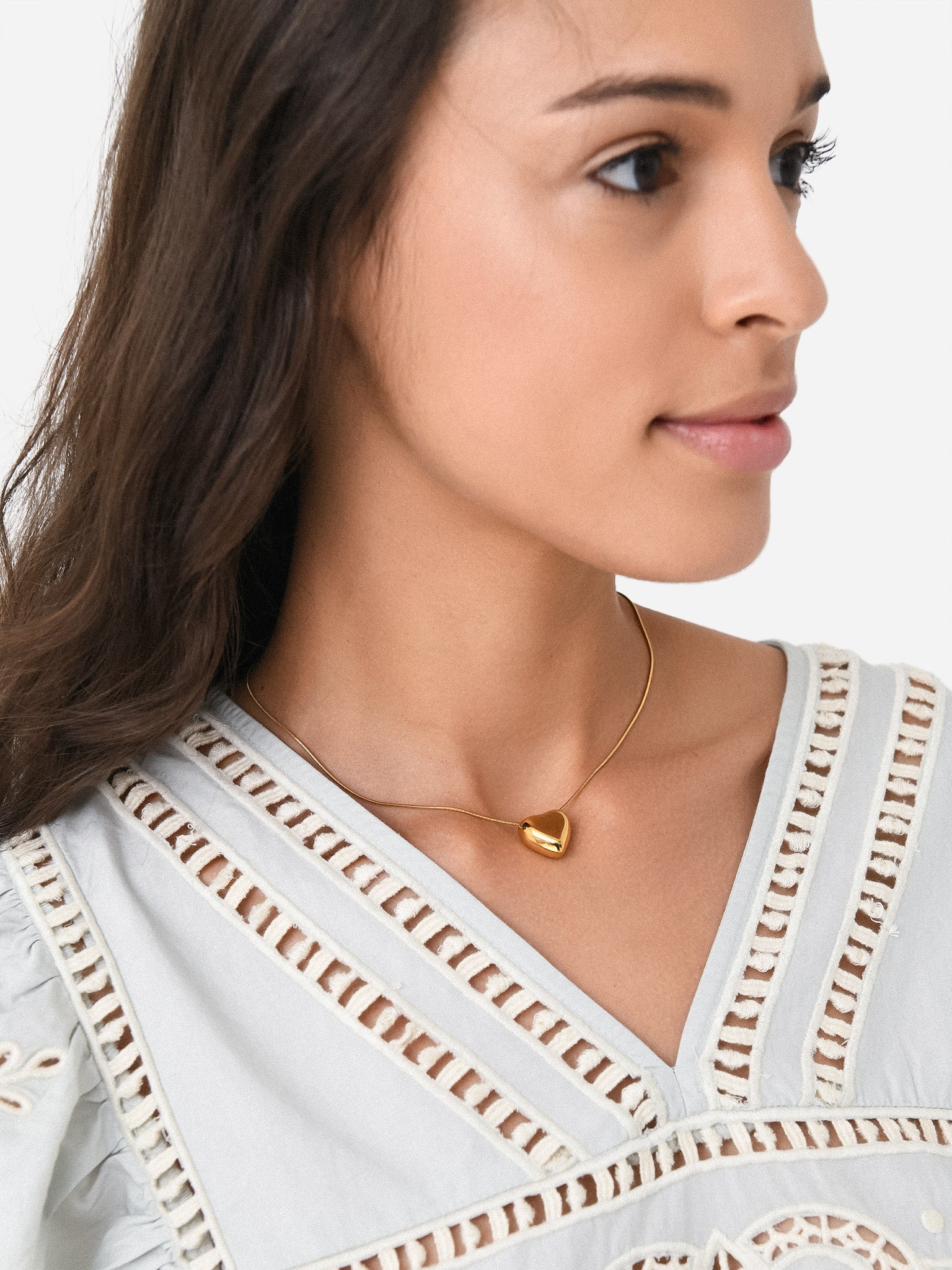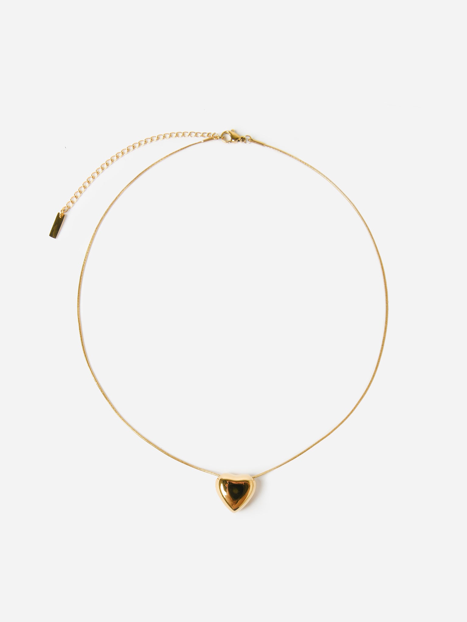 High-shine 14-karat gold-plated necklace with a puffy heart pendant.