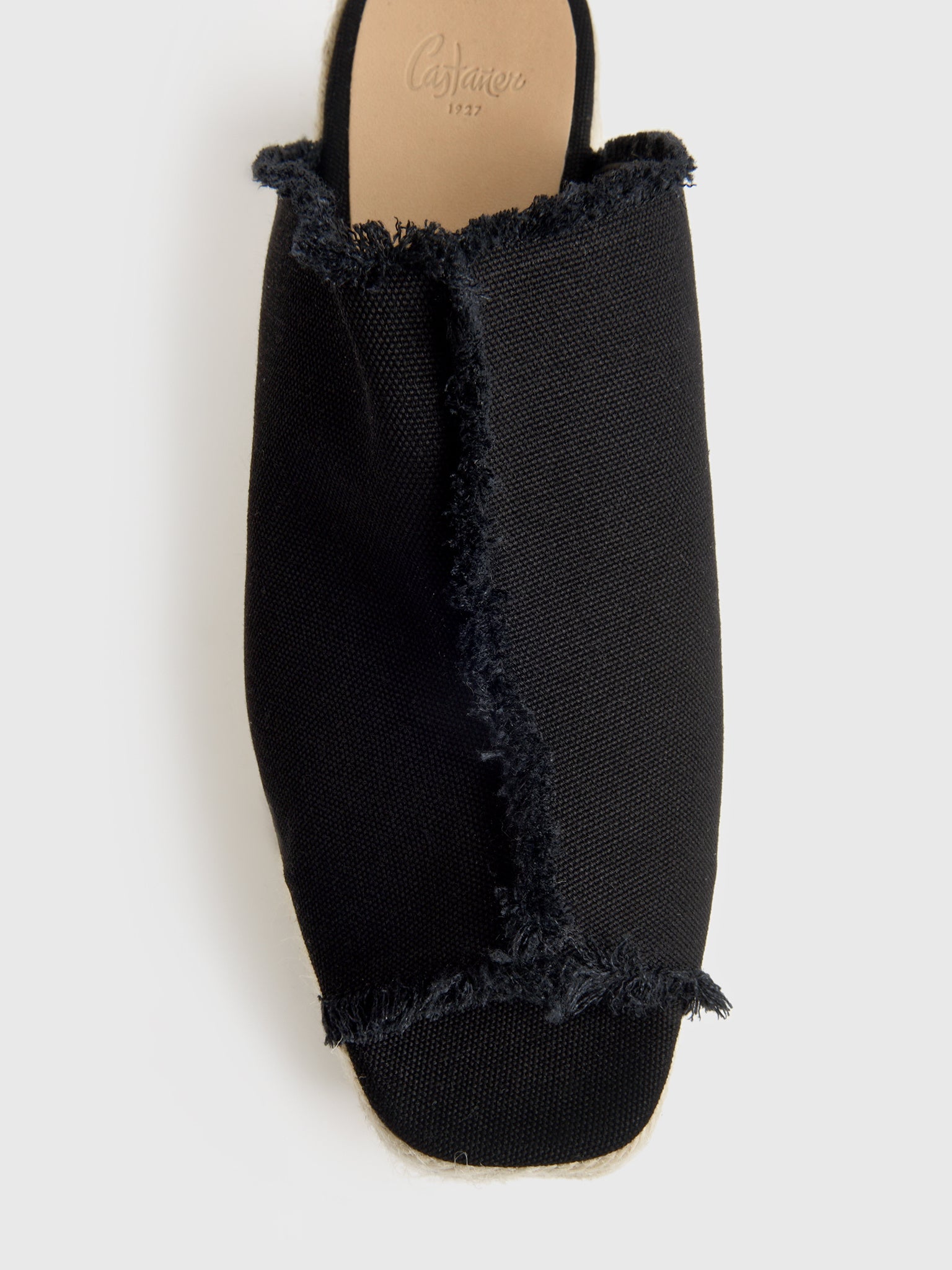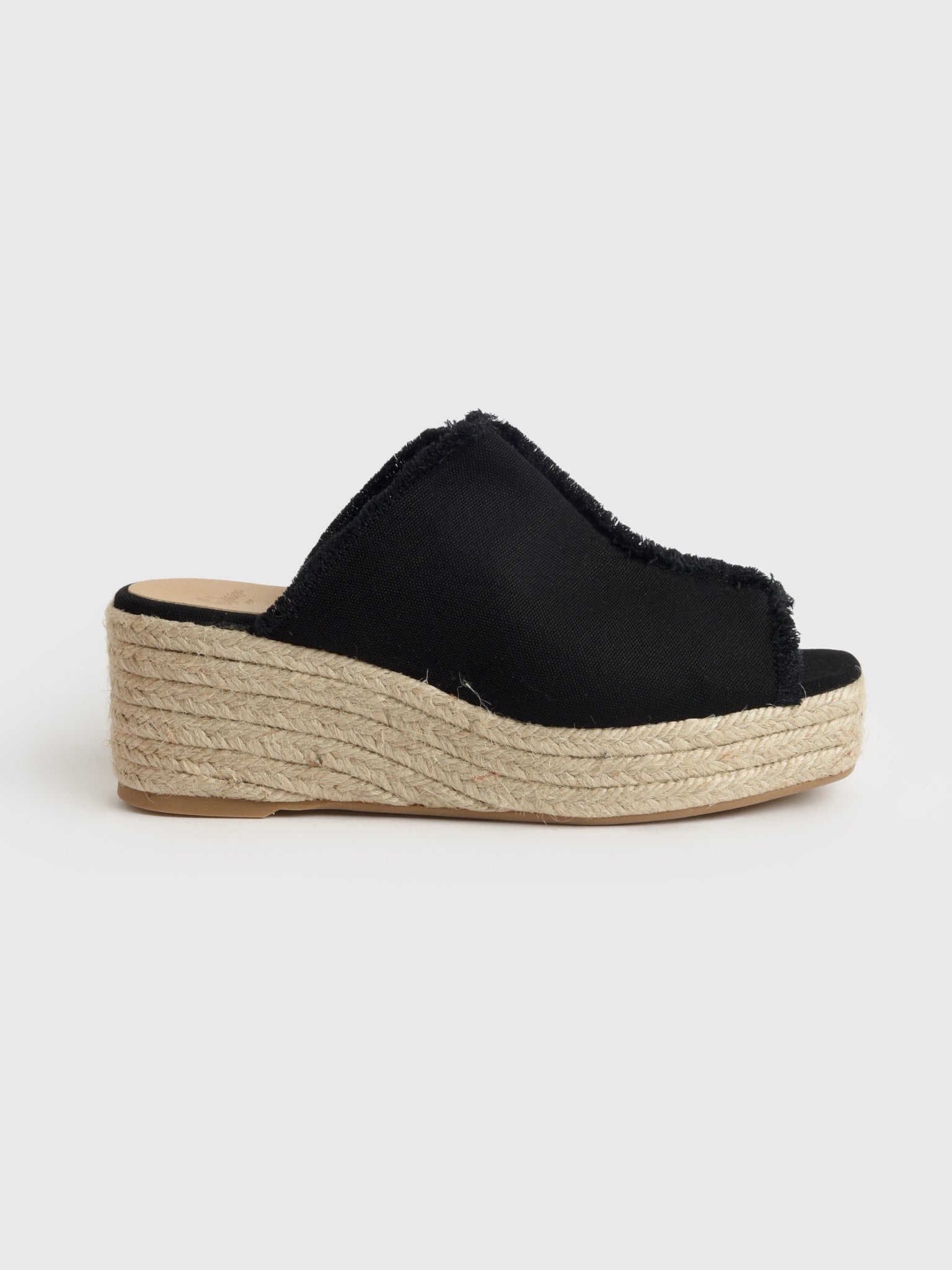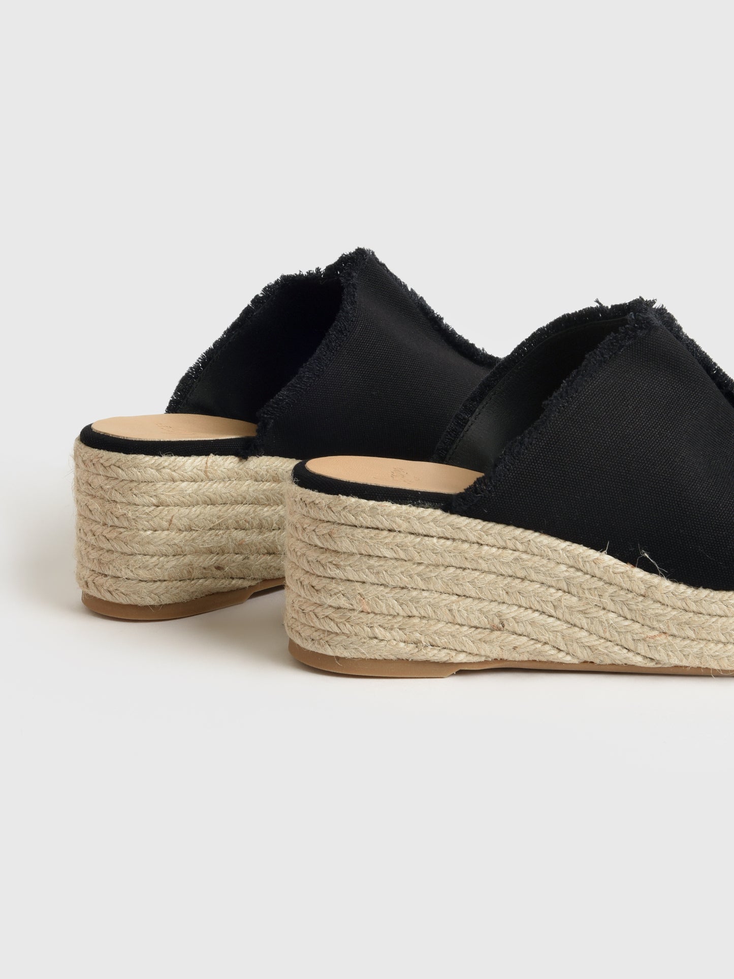 This modern take on a classic wedge features a canvas upper with stylish frayed edges and a jute heel for effortless sophistication.