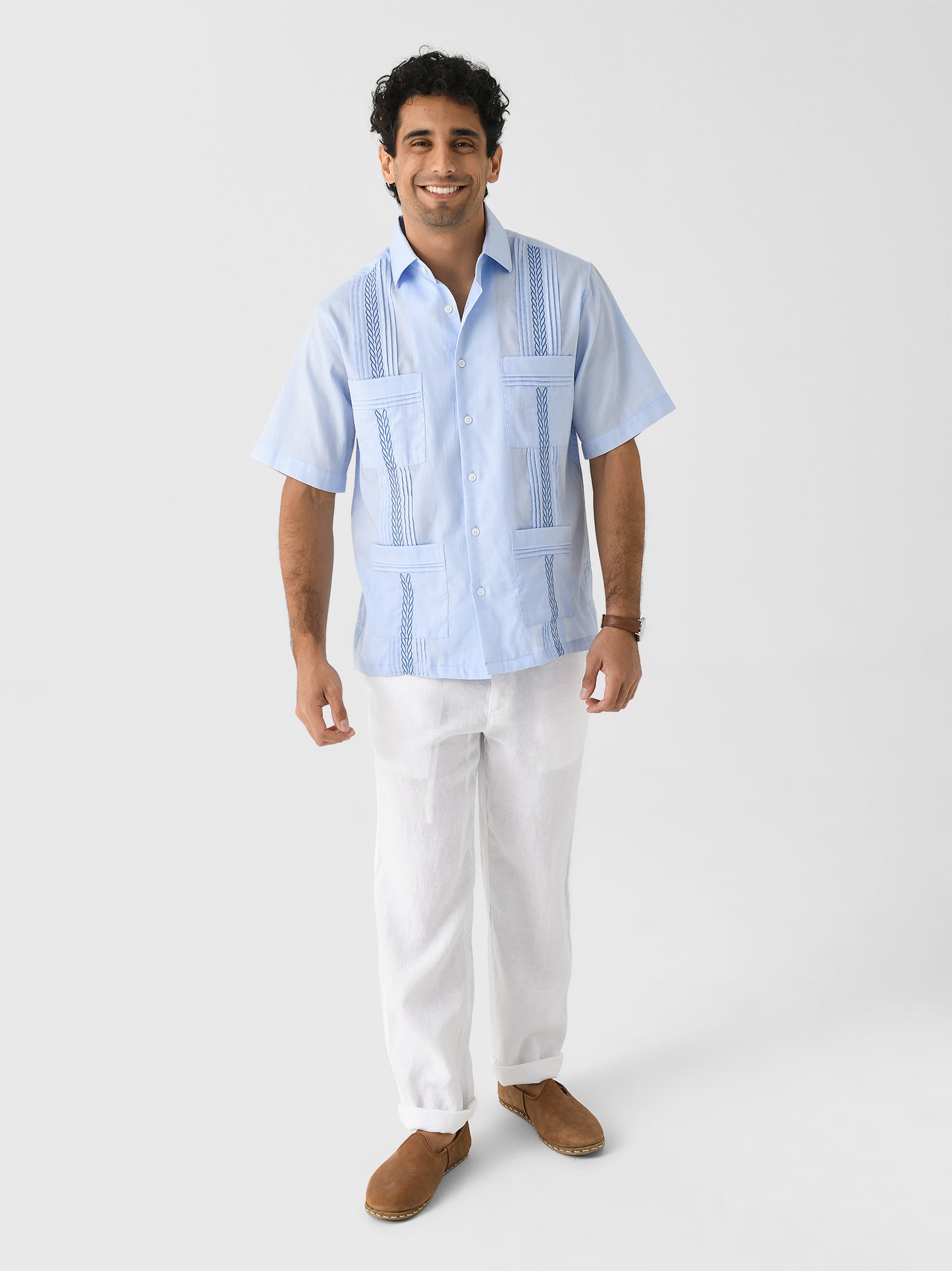 Men's Short Sleeve Cotton Piqué Guayabera Shirt