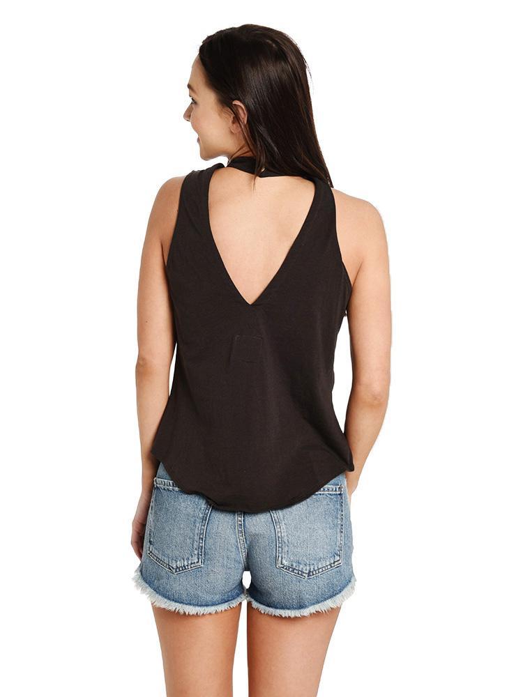 Take on summer or your next vacation in the Chaser Vintage Jersey V Back Mock Turtle Neck Shirtail Tank.