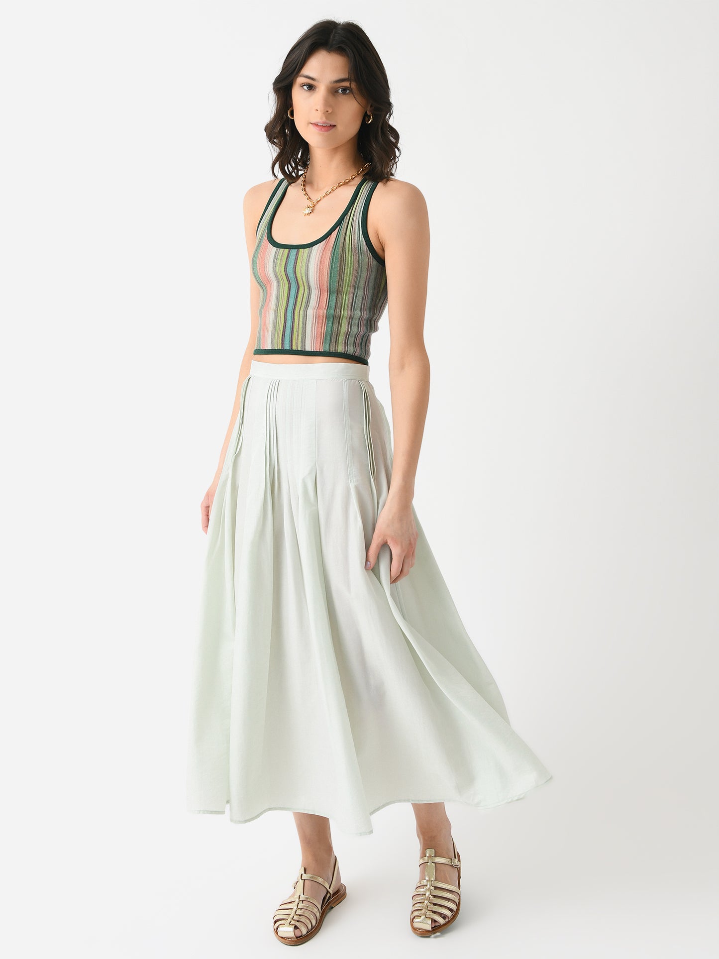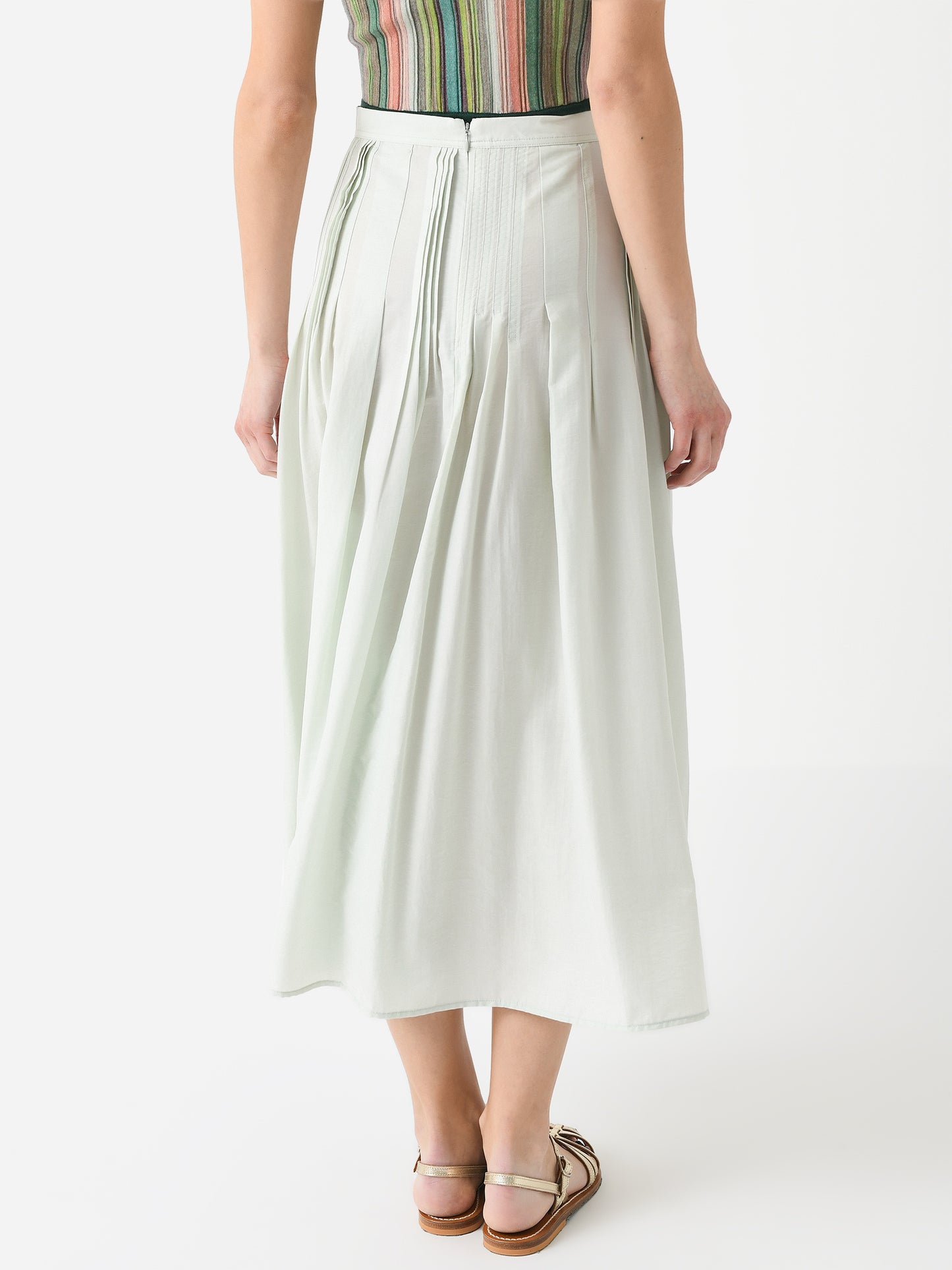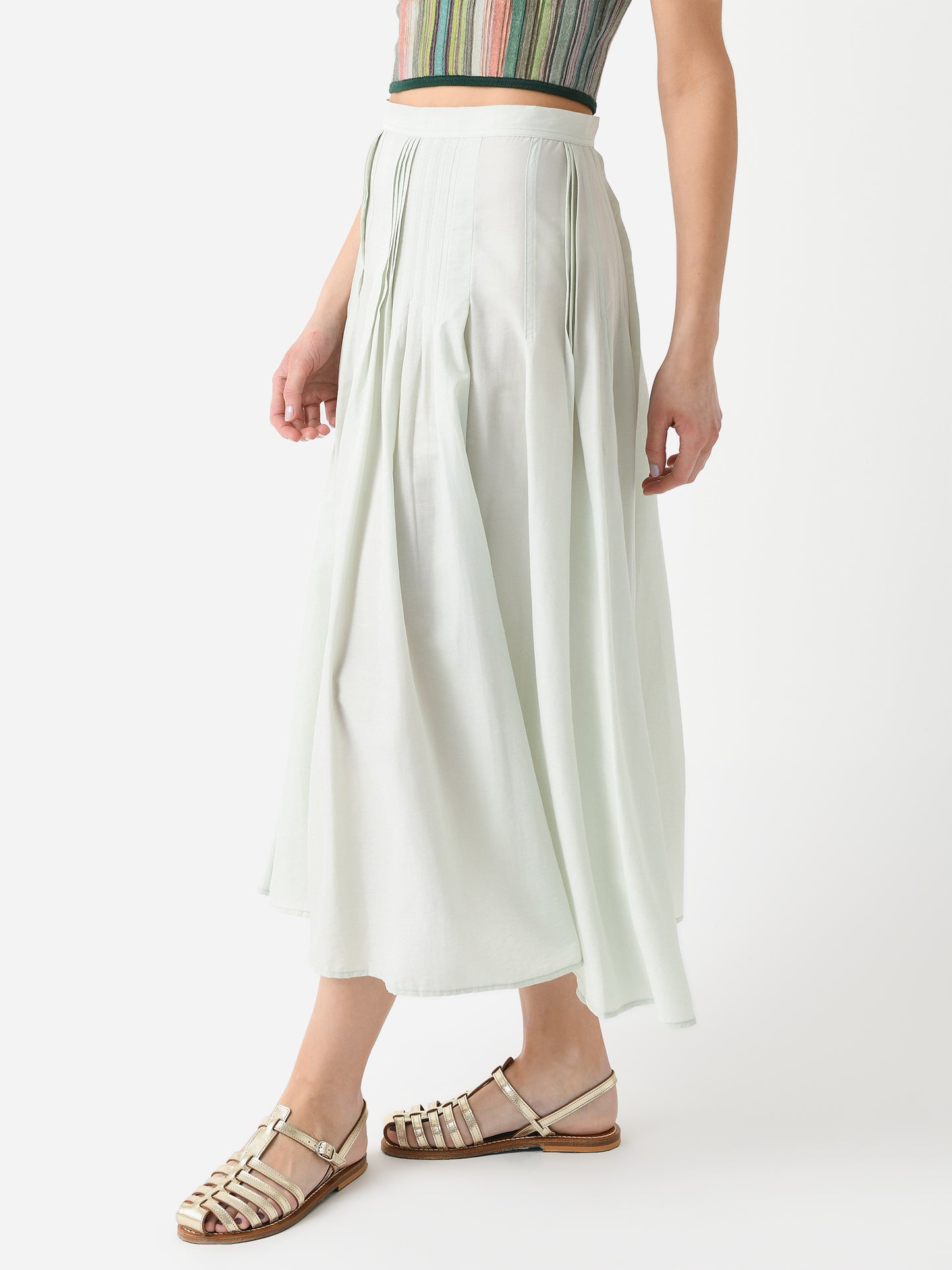 A long skirt made from tencel twill fabric with full-length pleated details.