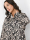An oversized shirt cut from satin viscose fabric featuring a psychedelic stencil print.