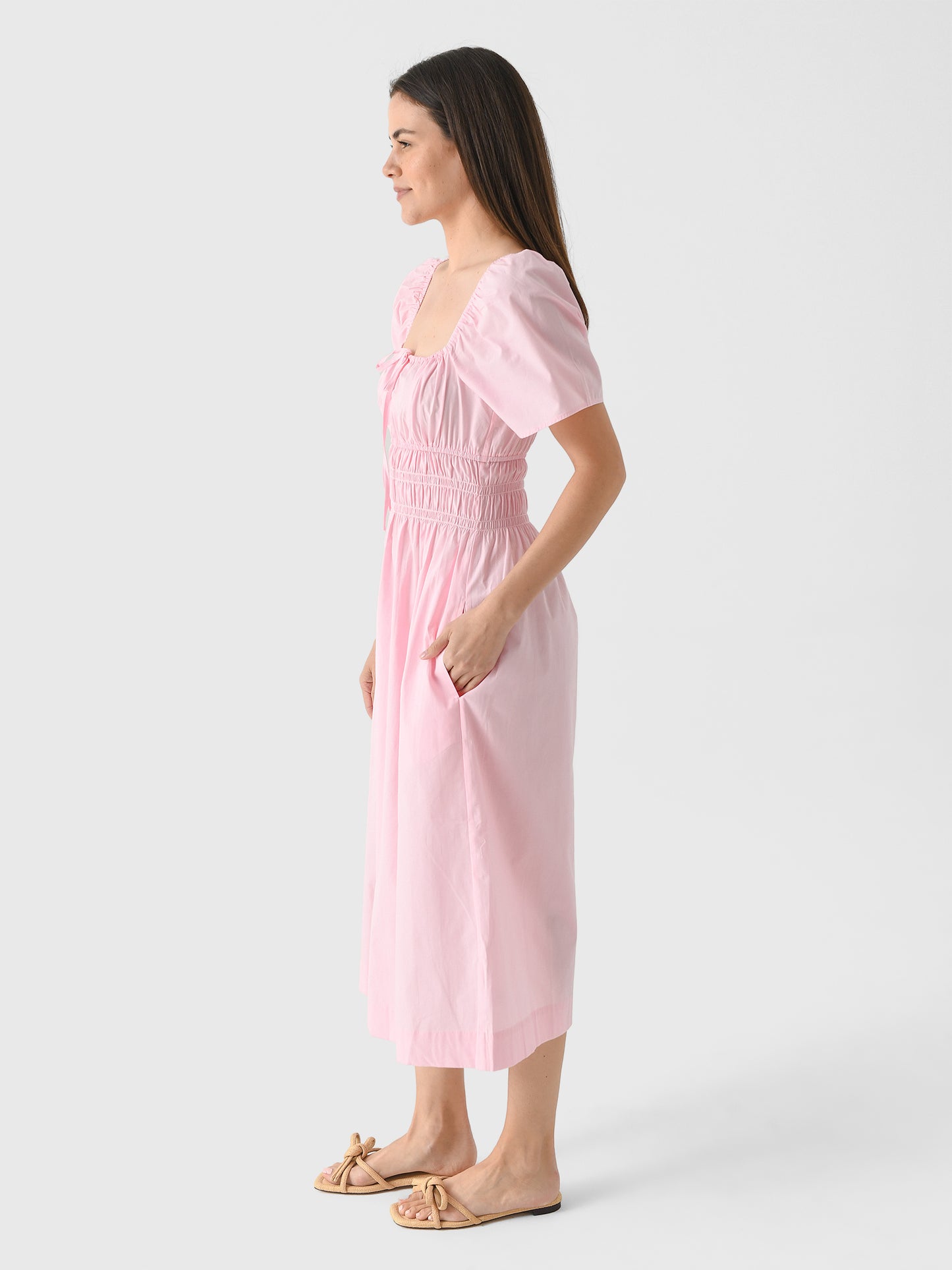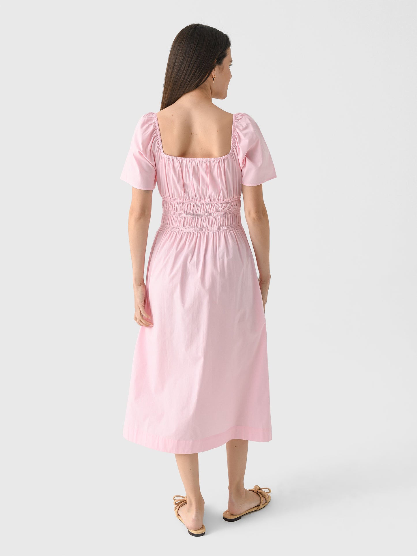 This airy dress is made from crisp cotton poplin and features voluminous sleeves and a smocked waist.