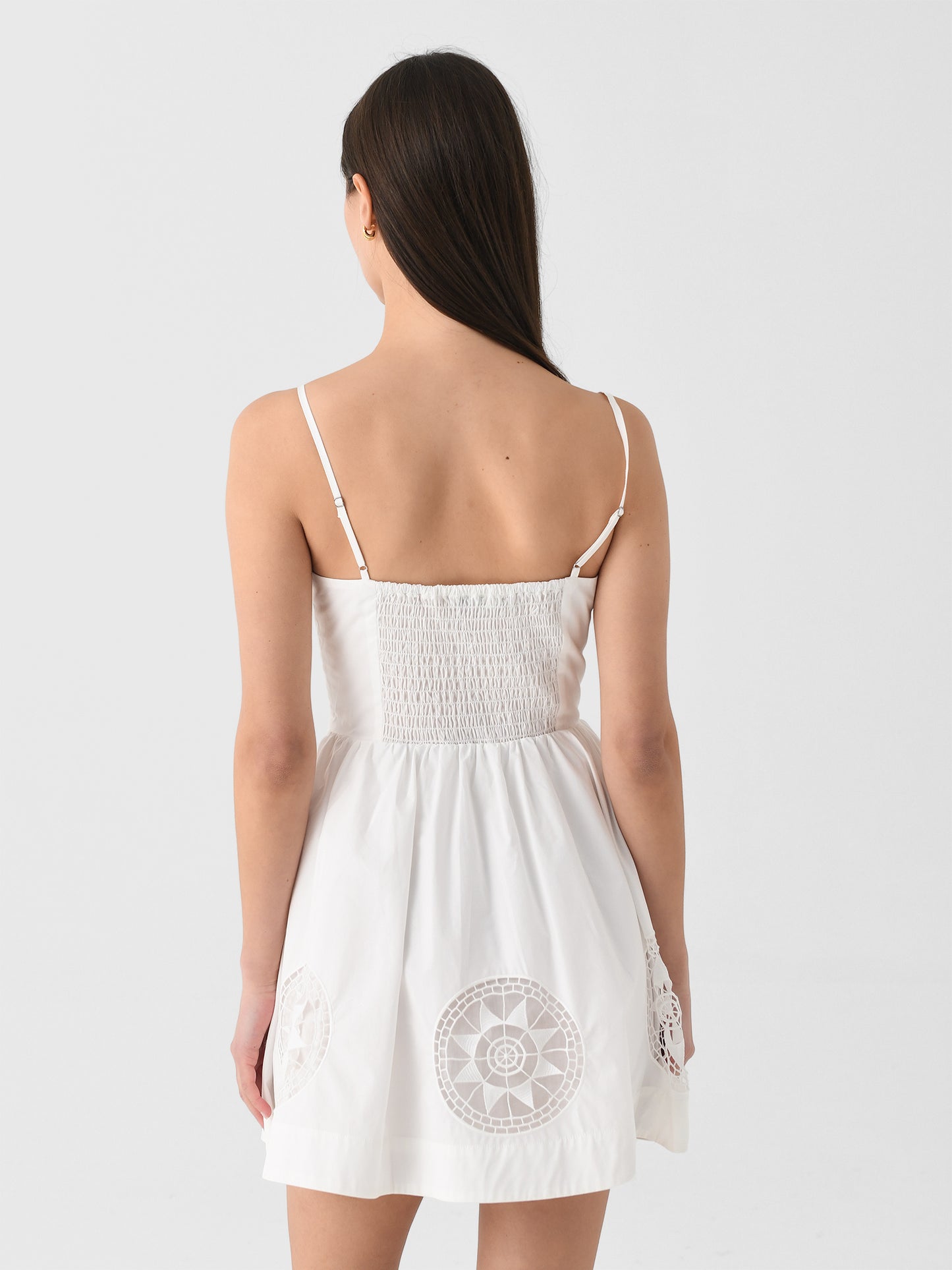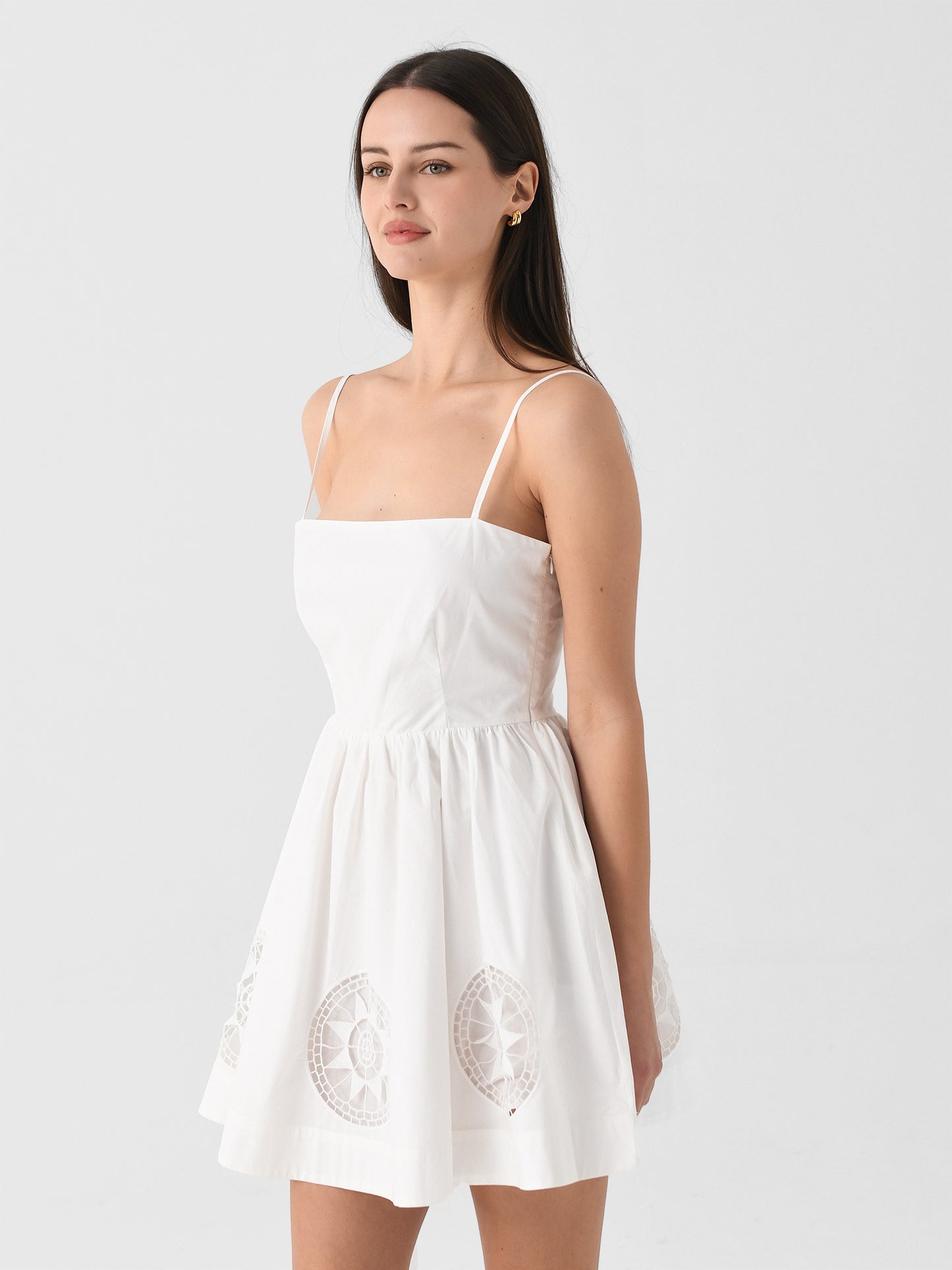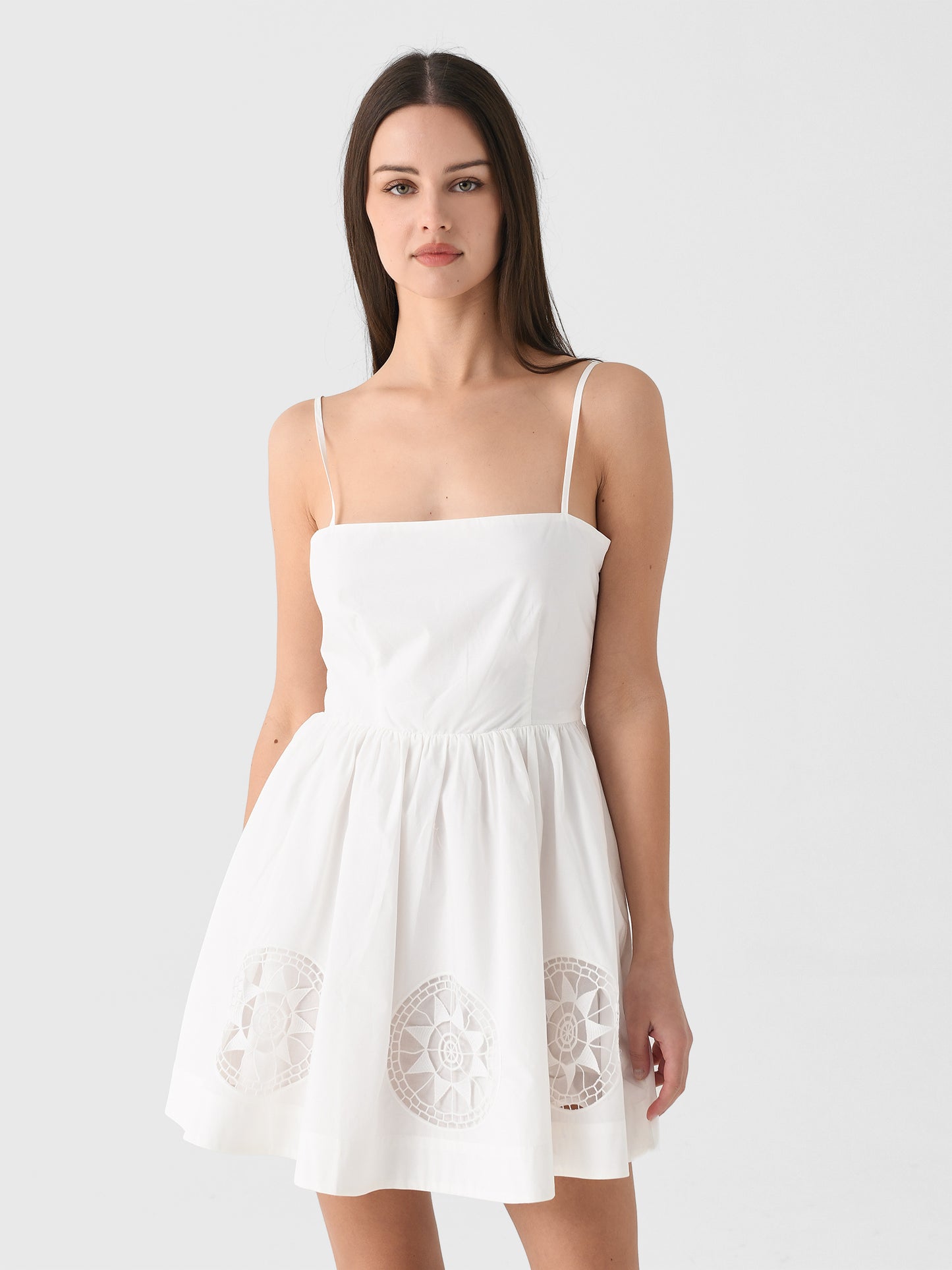 This airy mini dress is made from lightweight cotton and features a full skirt with embroidered detailing.