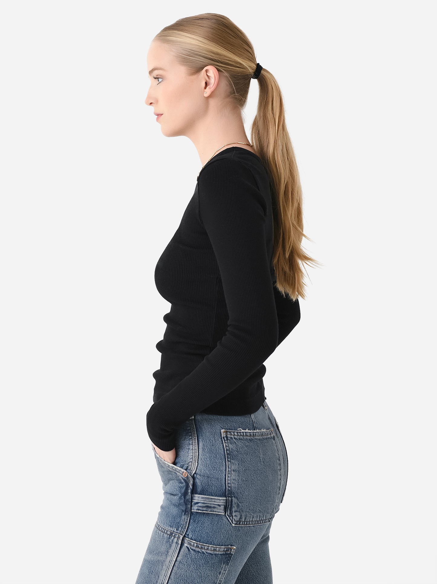 Ribbed long-sleeve top with a slim-fitting silhouette.