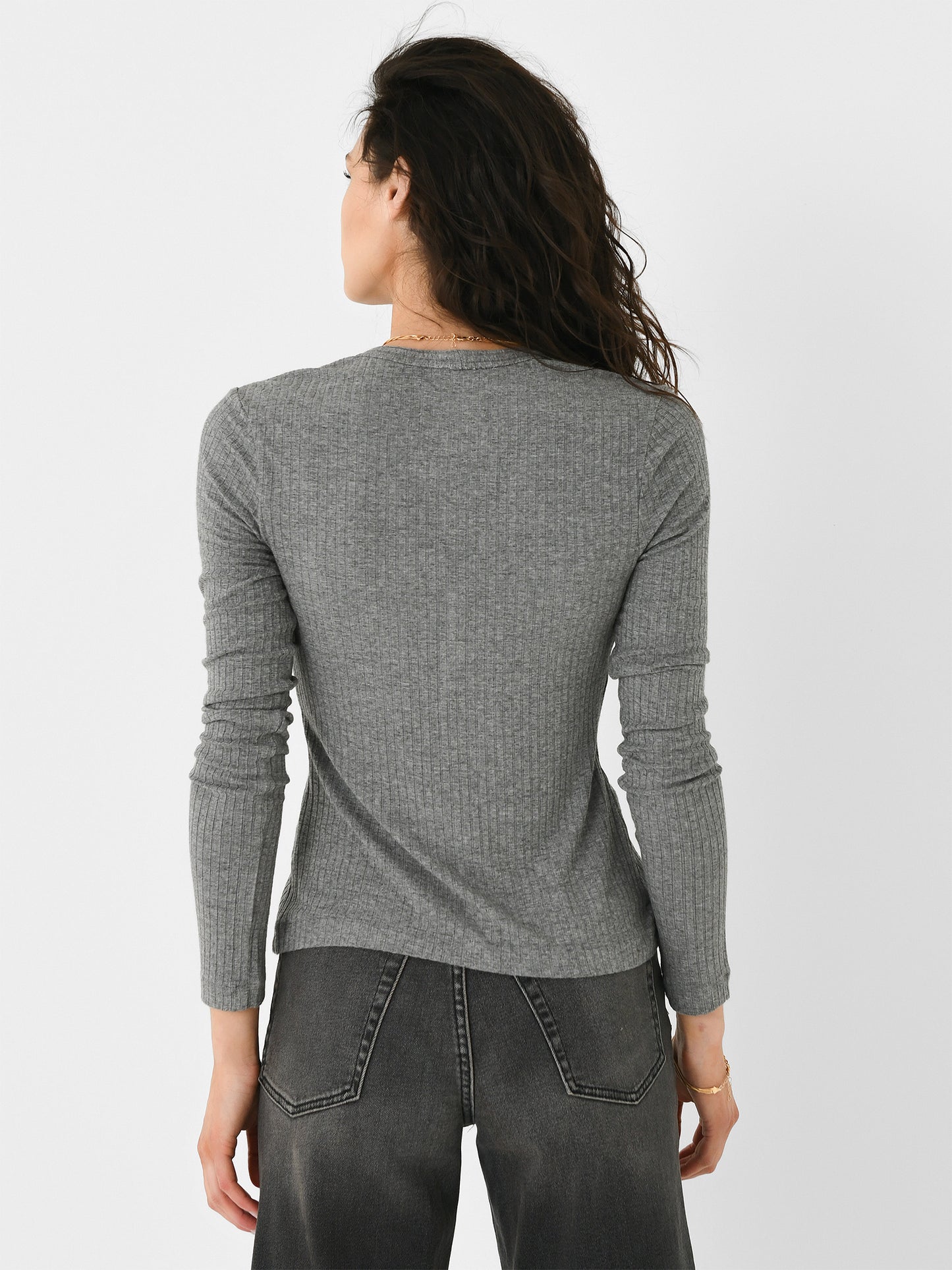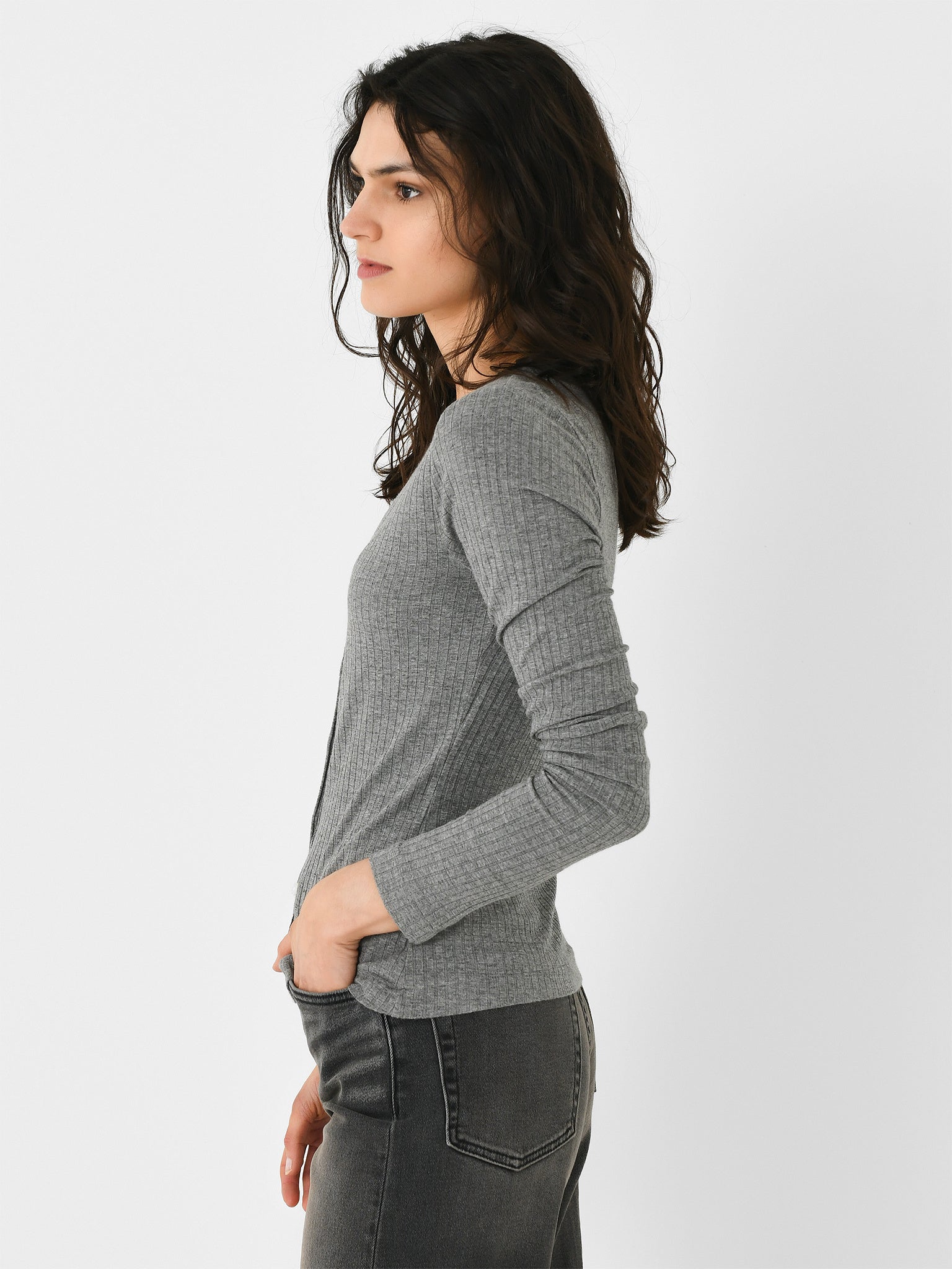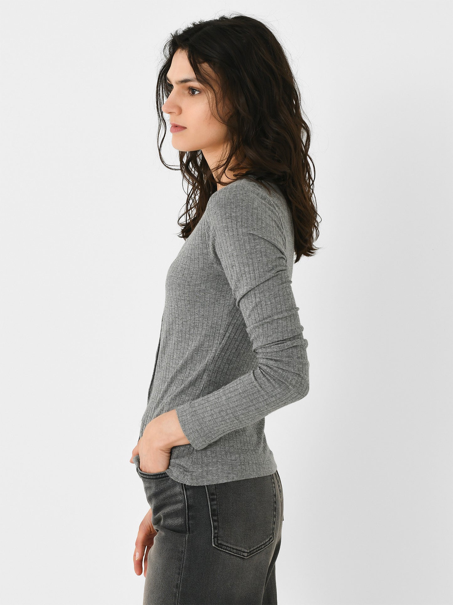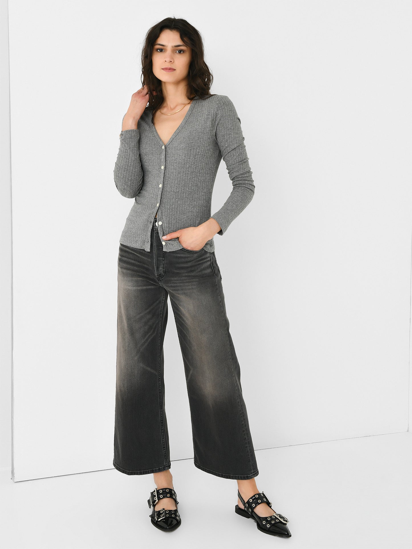 A form-fitting cardigan made from ultra-soft ribbed knit fabric.