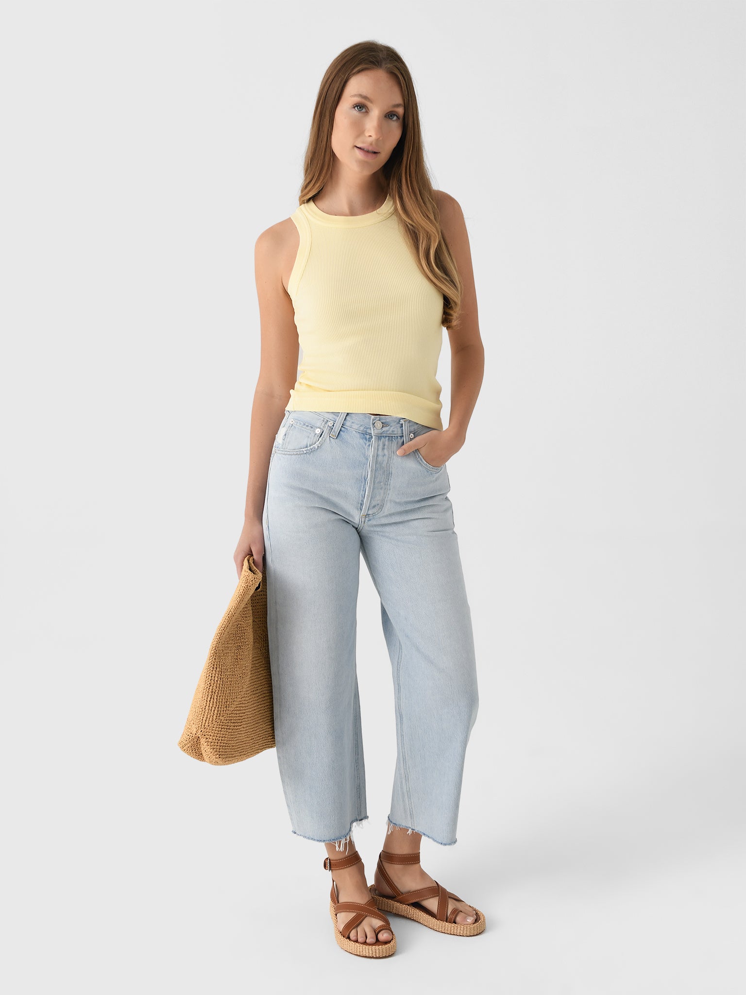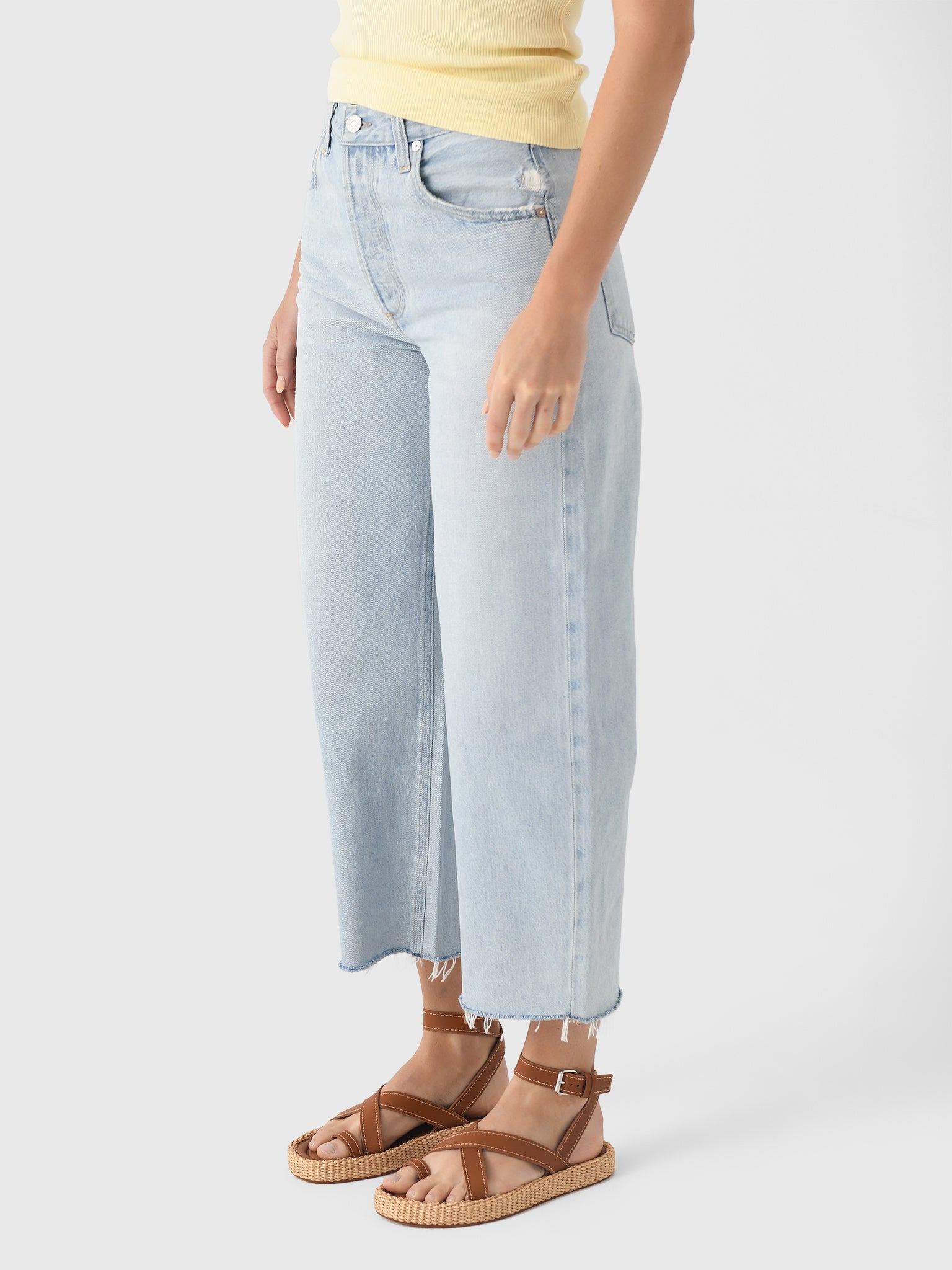 Inspired by vintage rework, the Ayla Raw Hem Crop offers a flattering fit with a roomy leg and raw hem. It's perfect for warm days and effortlessly styles from casual to chic ocassions.