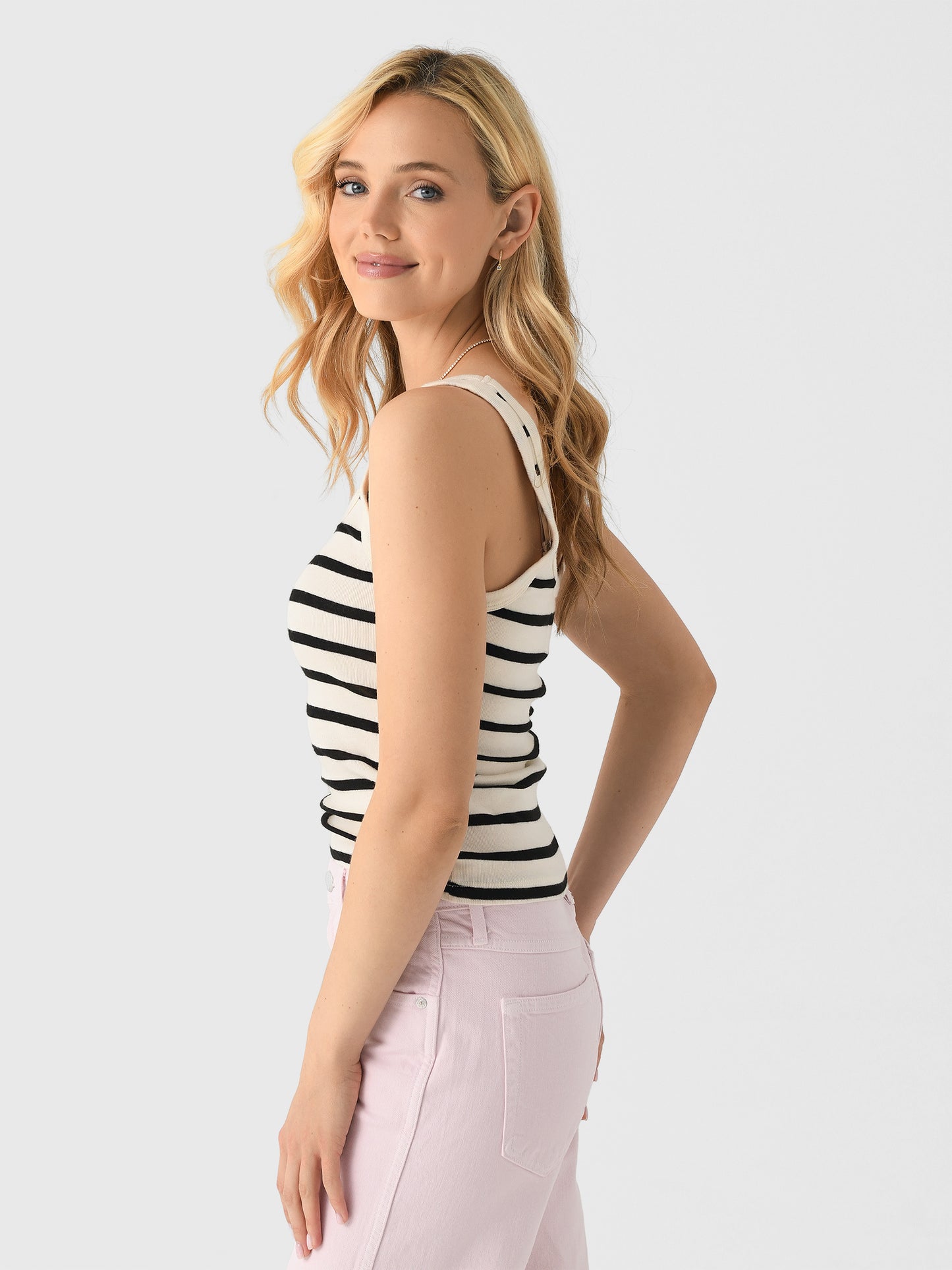 - Model is wearing size Small tank top.