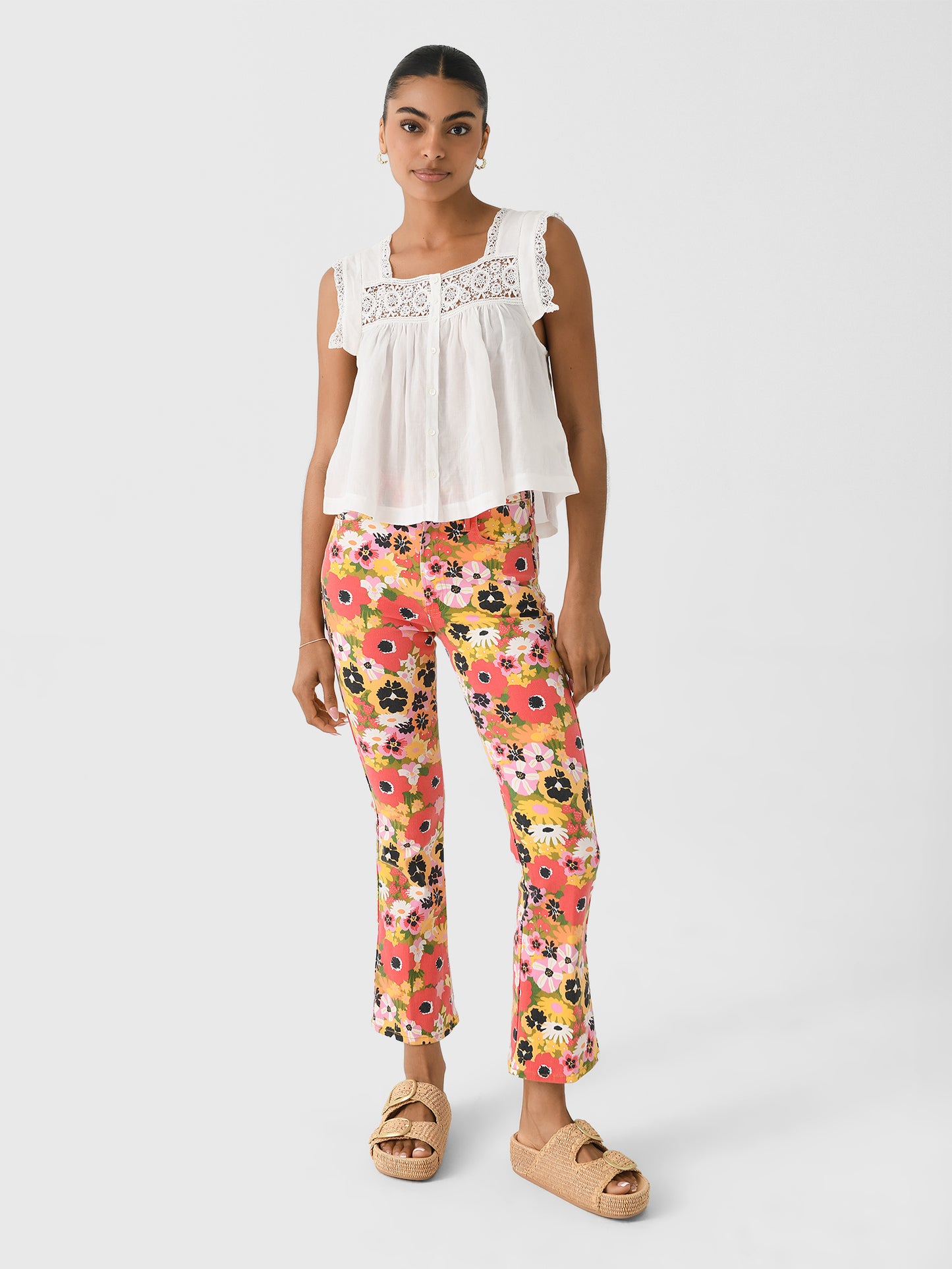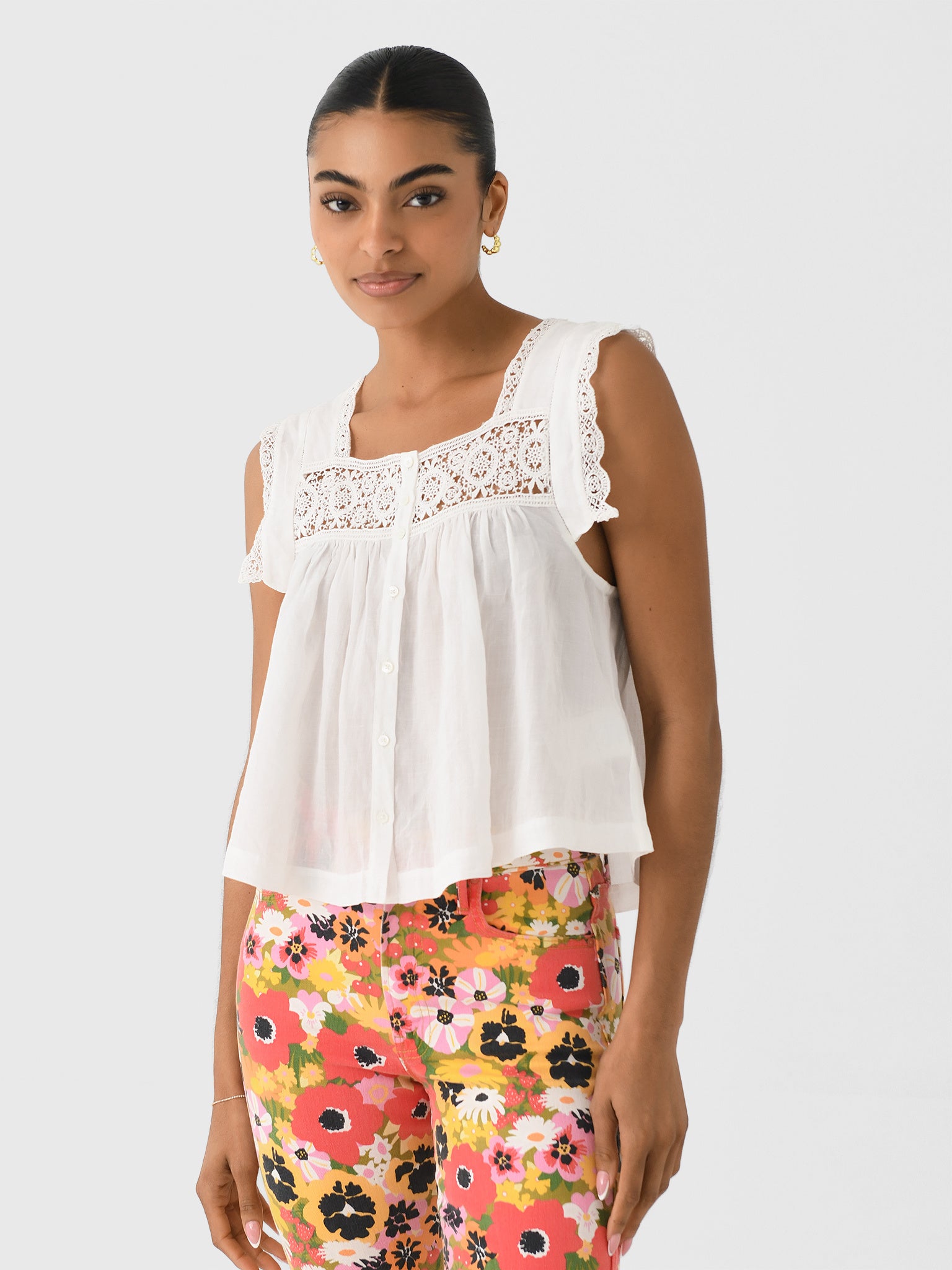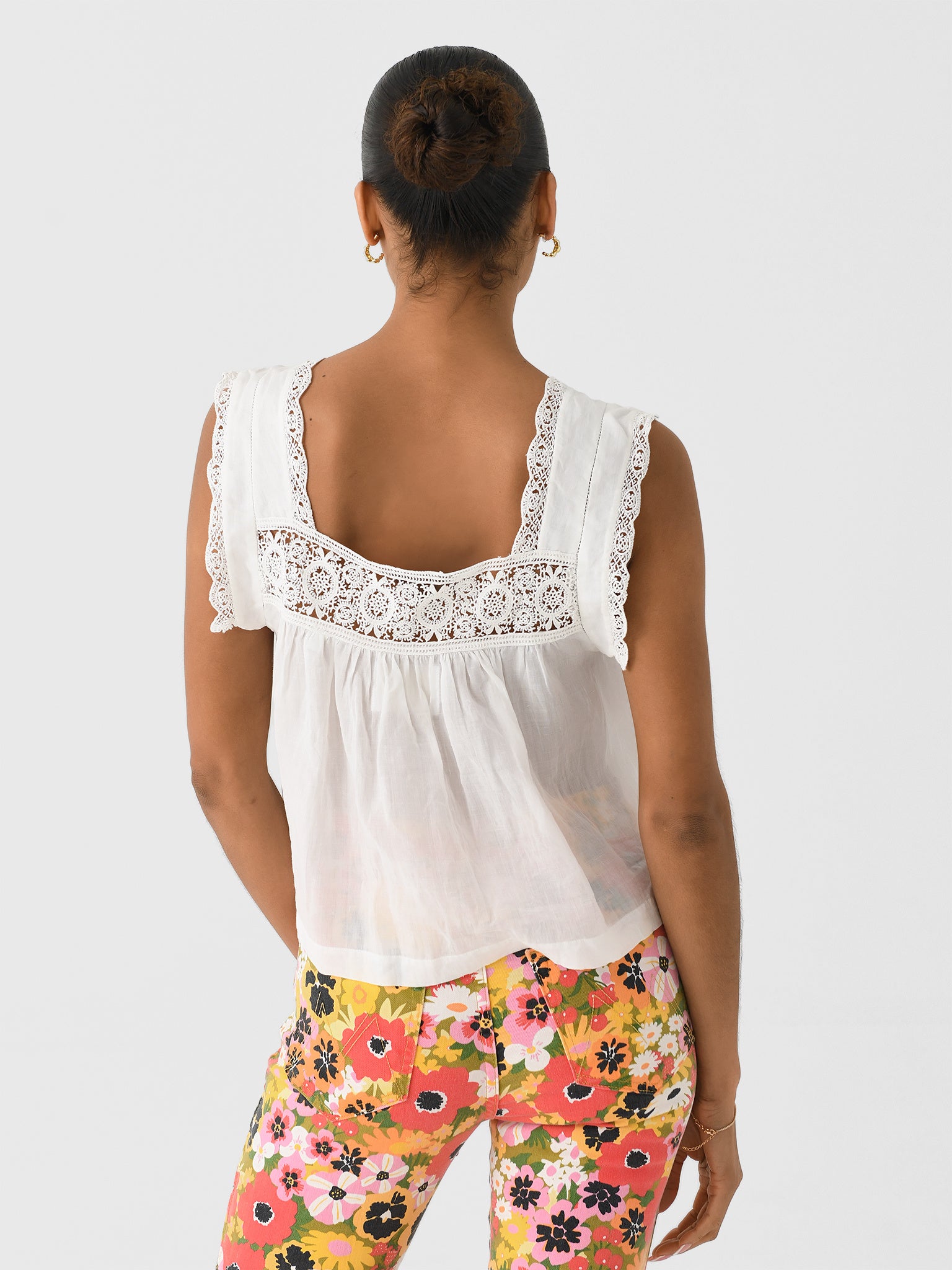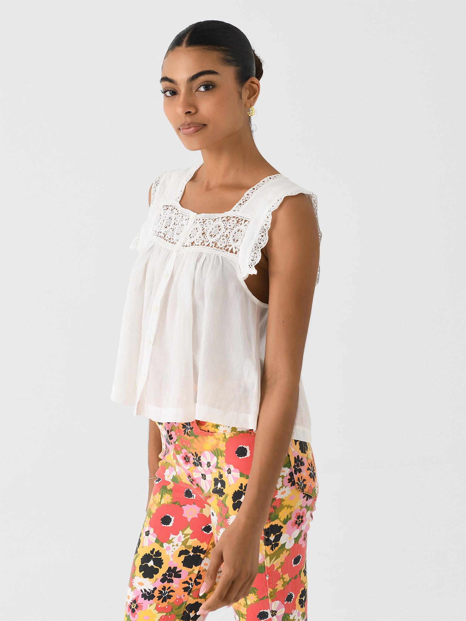 An airy, sleeveless top made from ultra-lightweight ramie and finished with inset lace details and a cropped design.