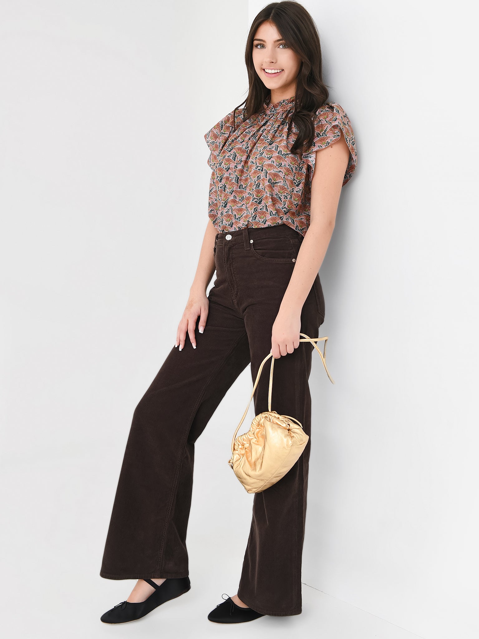 A baggy wide-leg pant made from soft stretch corduroy fabric.