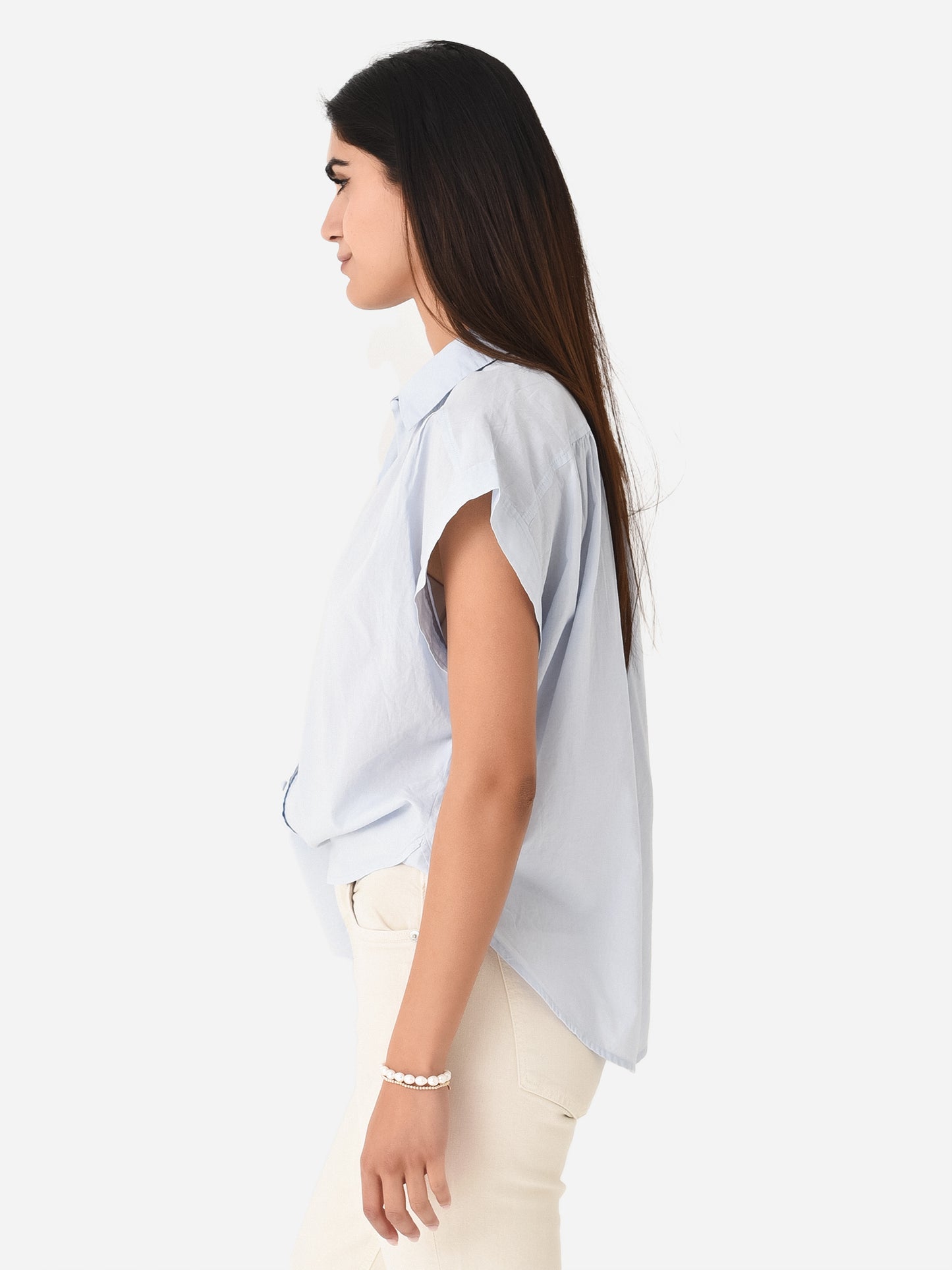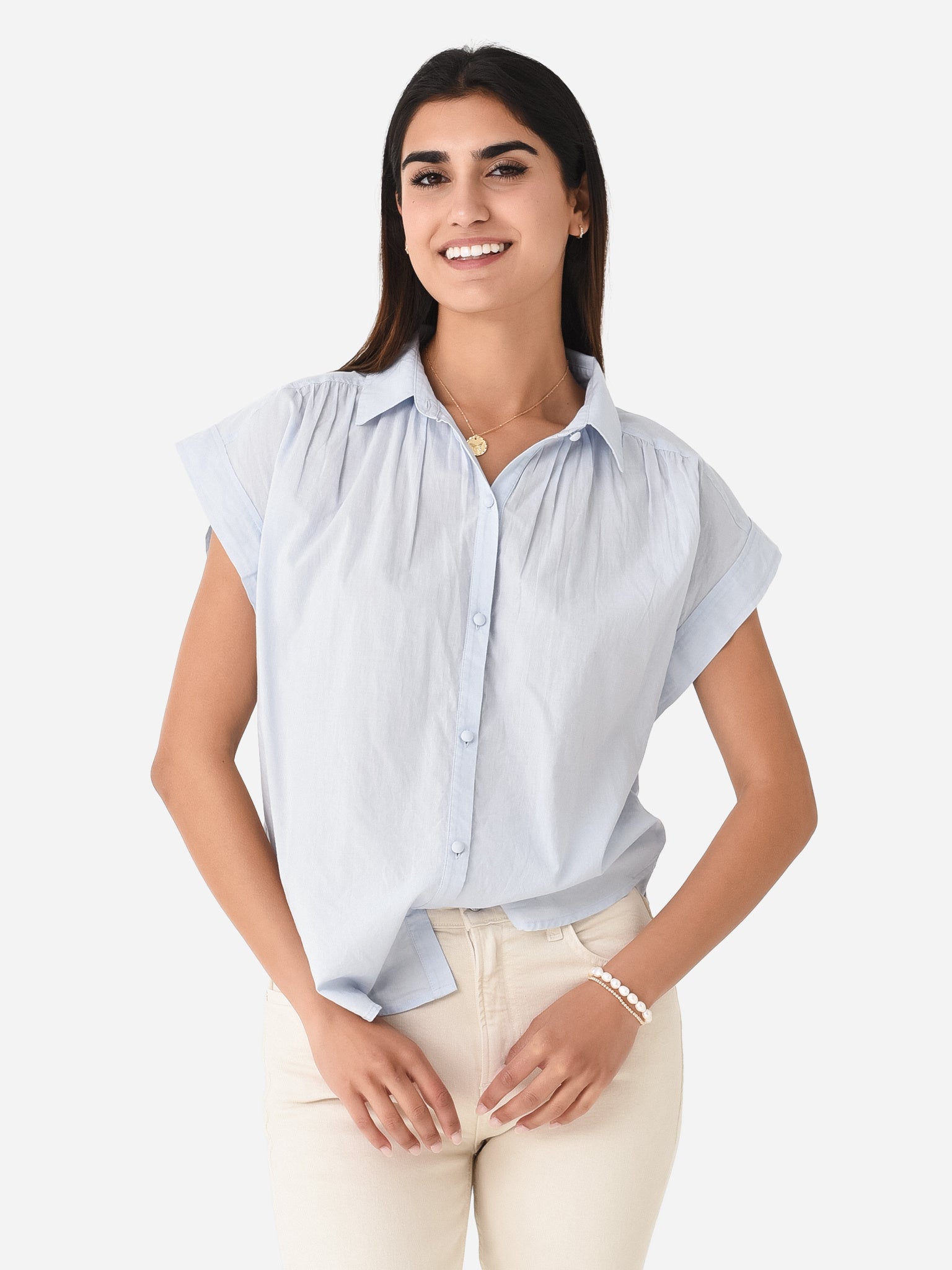 Ultra-lightweight poplin blouse with a draped silhouette.