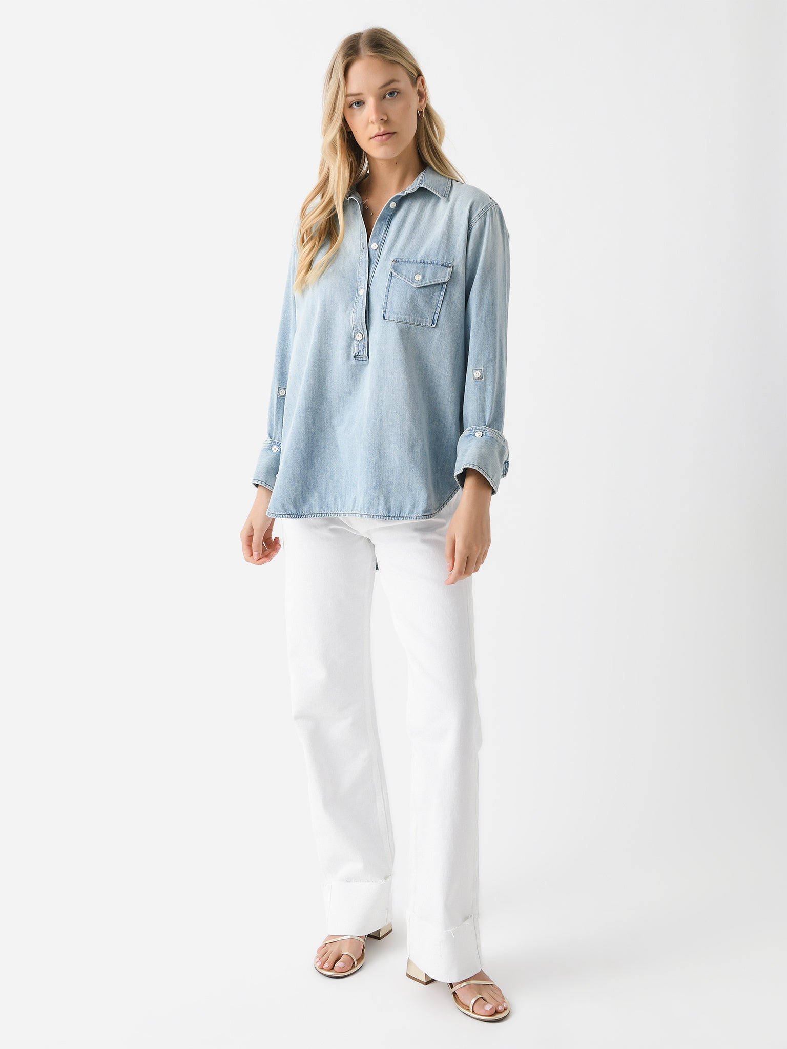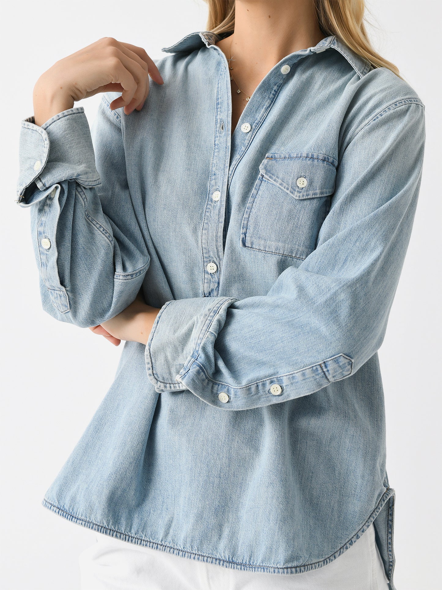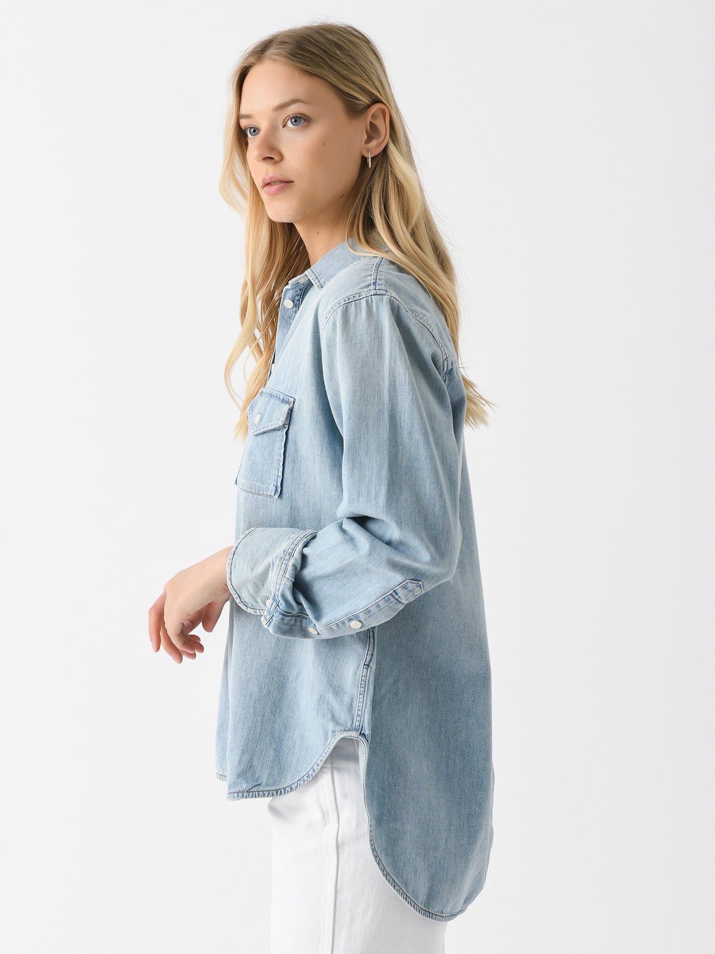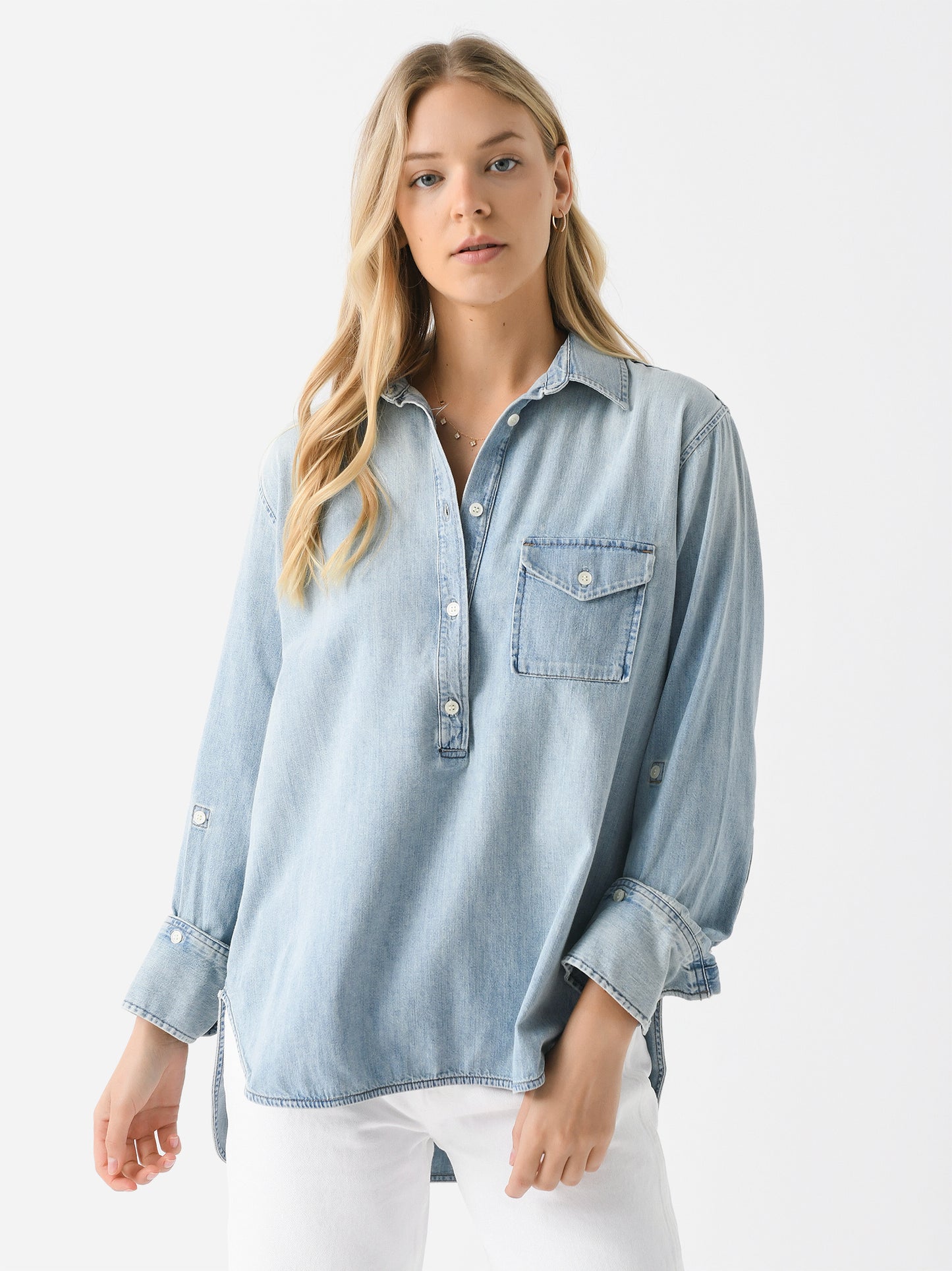A popover-style shirt made from breathable Japanese denim shirting fabric with a subtly roomy silhouette.