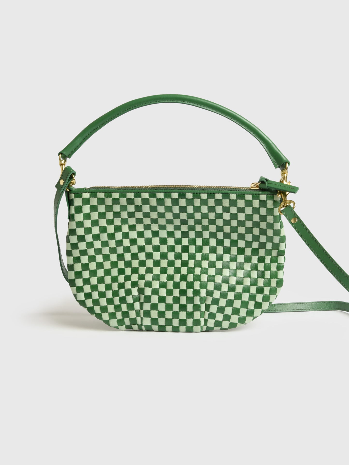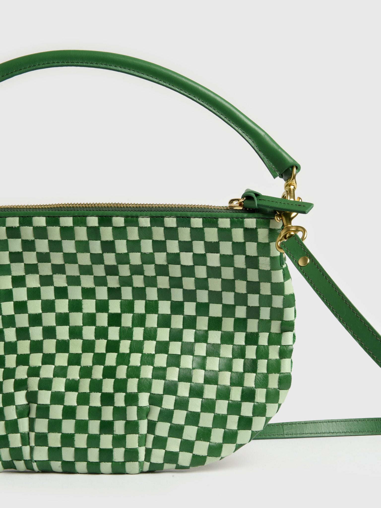 This eye-catching woven bag will add a pop of personality to your style. The vibrant green and white checkerboard pattern and unique woven texture create a playful yet sophisticated look.