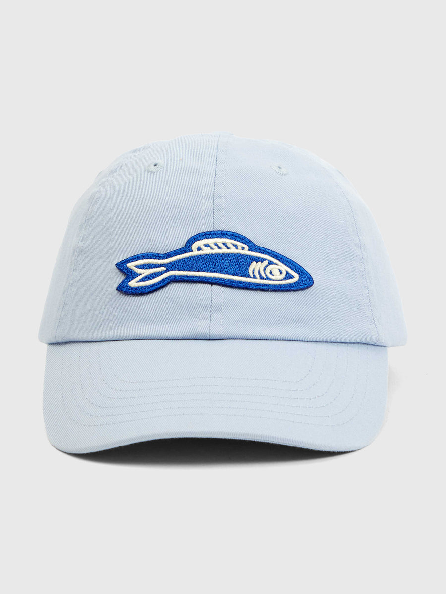 A lightweight cotton twill baseball hat featuring an embroidered sardine patch.