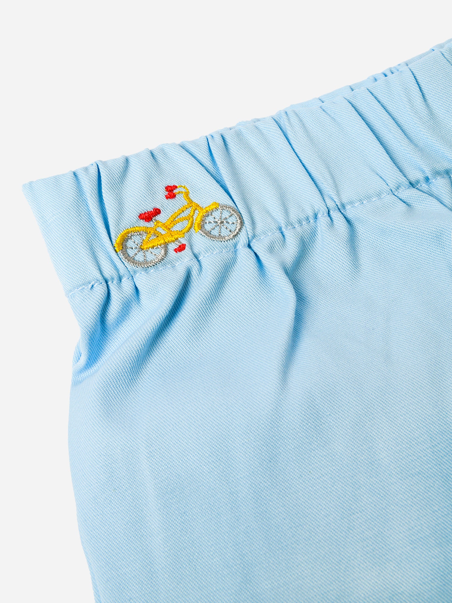 Breathable cotton twill pull-on short with an embroidered print.