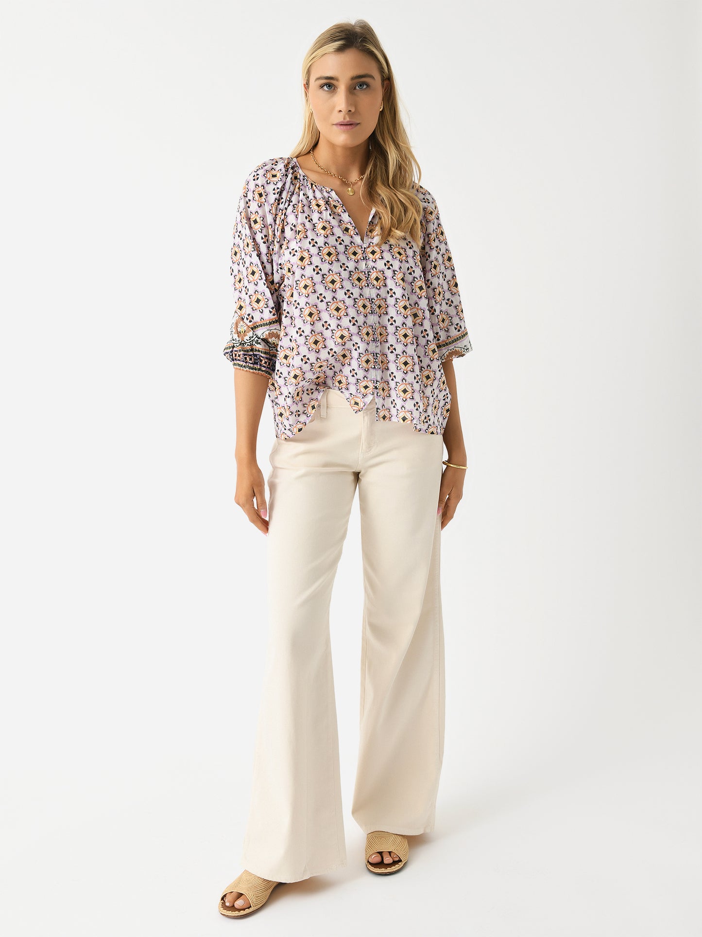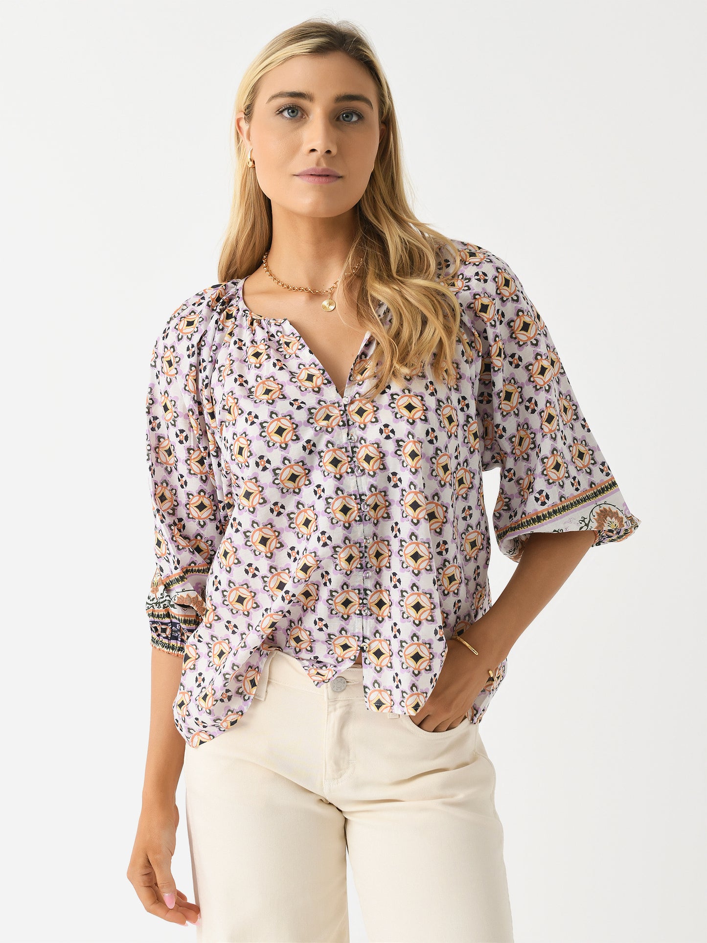 An elegant blouse made from lightweight organic cotton with a beautiful custom print.