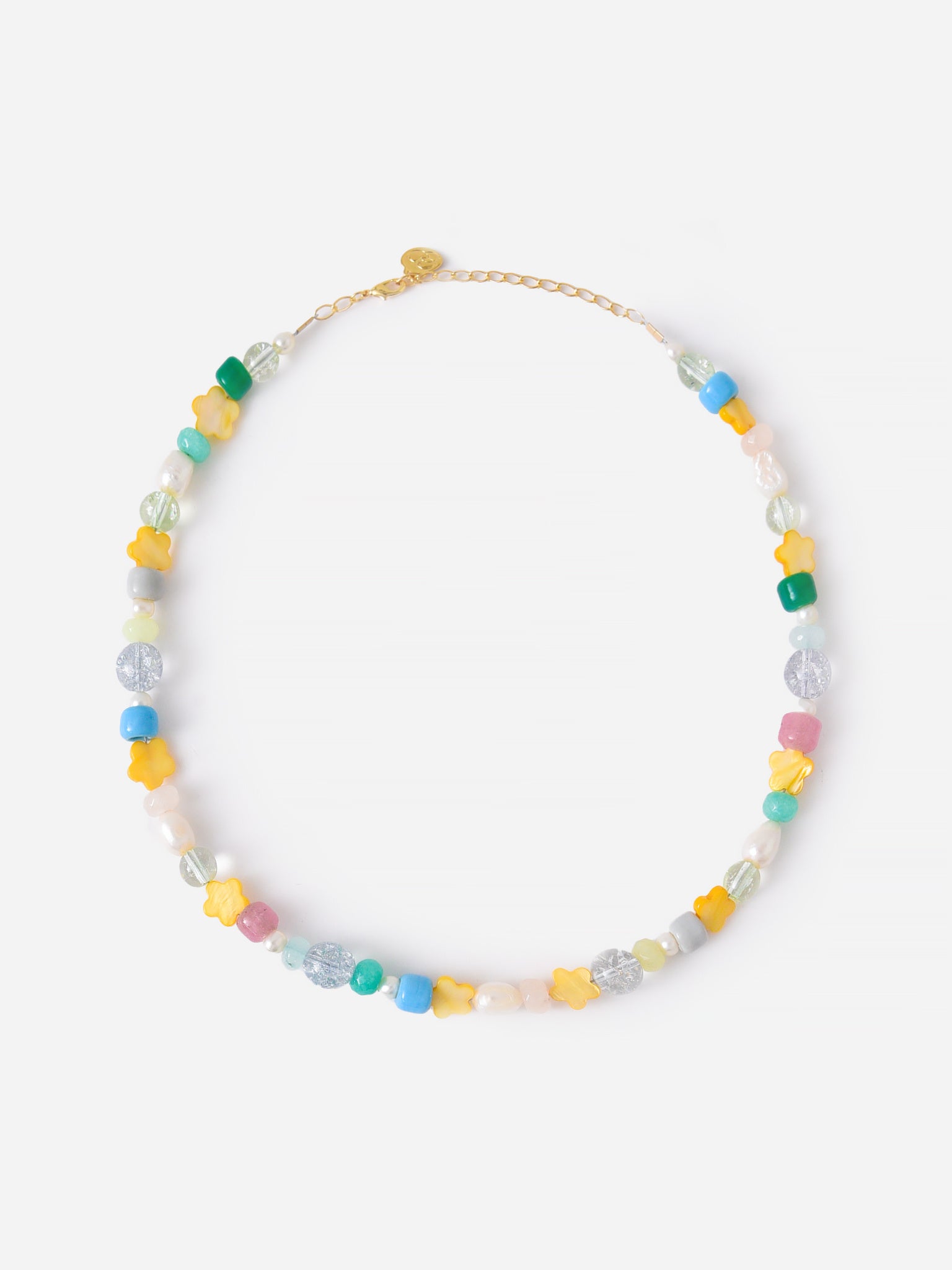 14-karat gold-plated brass necklace with colorful assorted beads.
