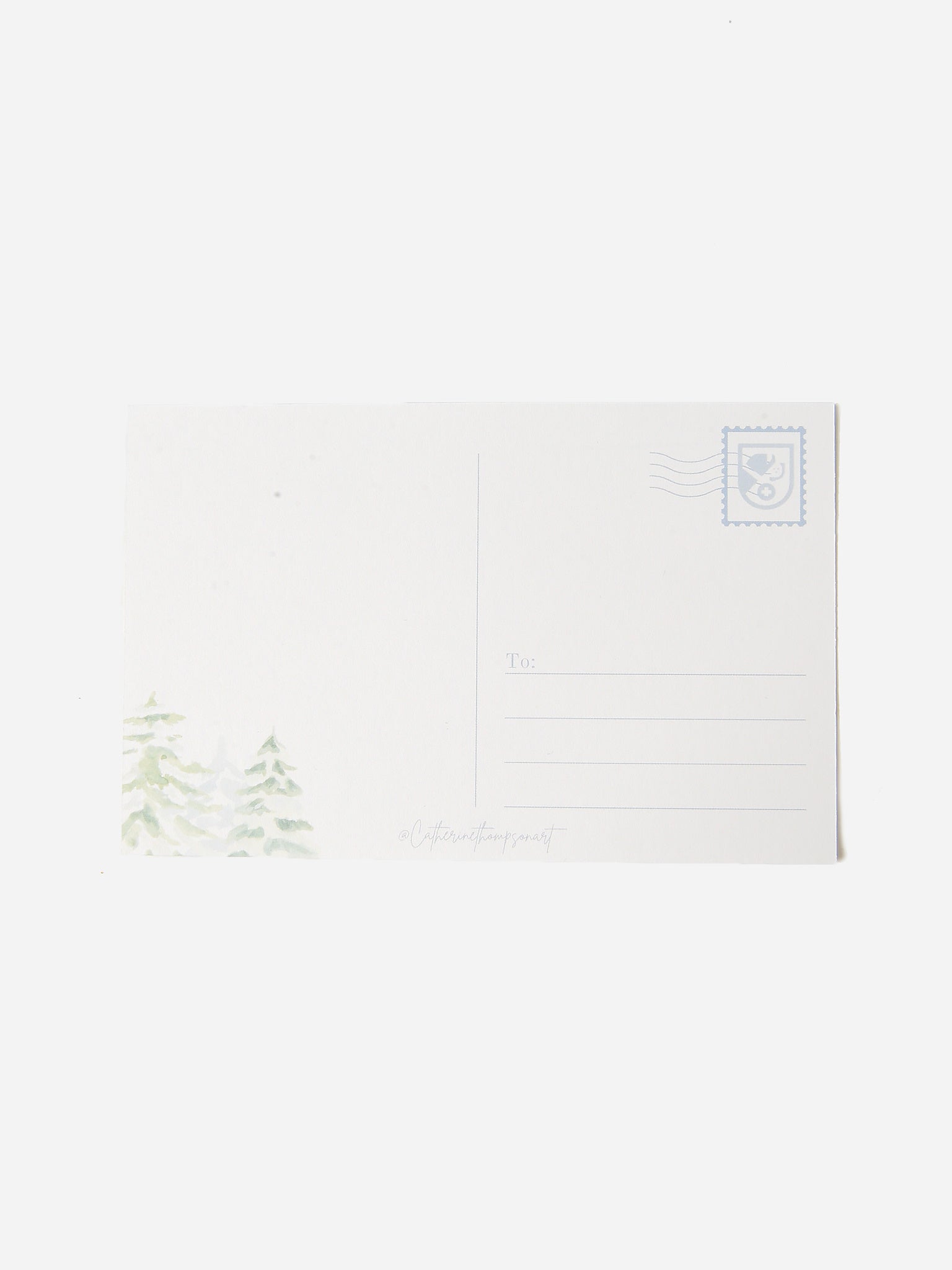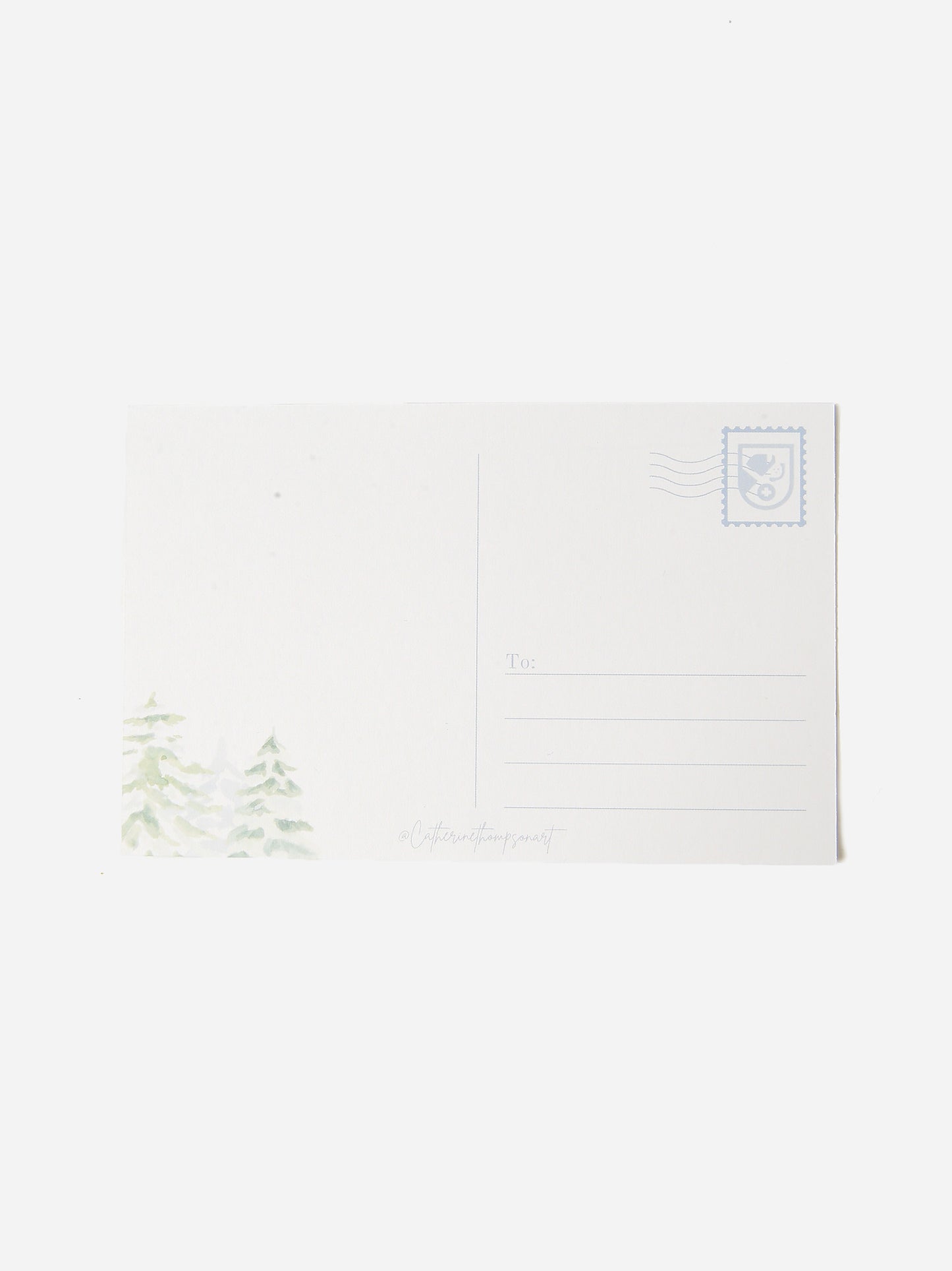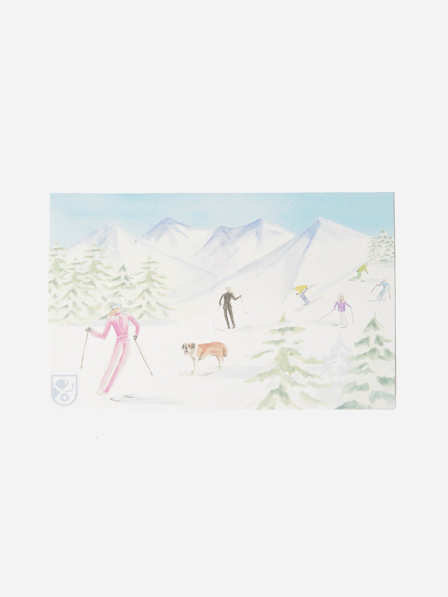 A custom Saint Bernard postcard with a hand-designed ski graphic by Catherine Thompson Art.