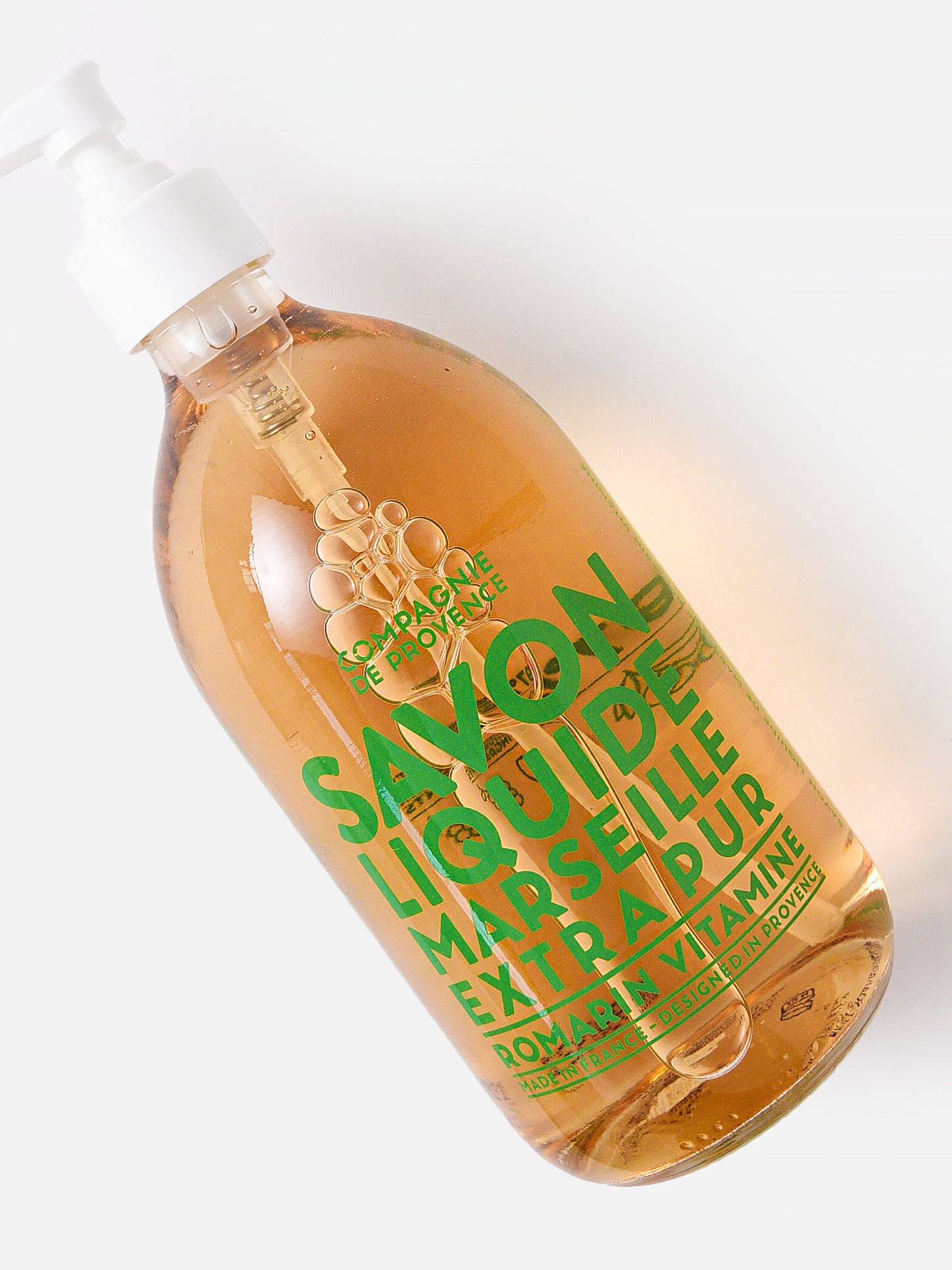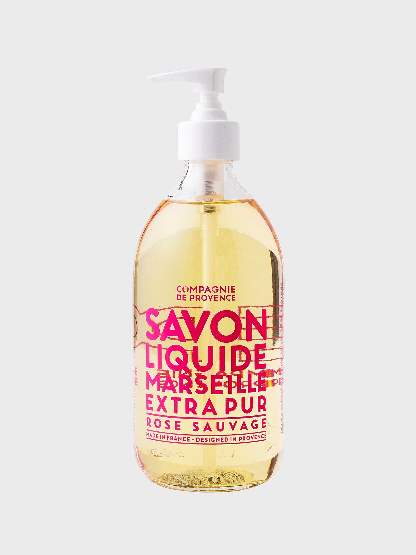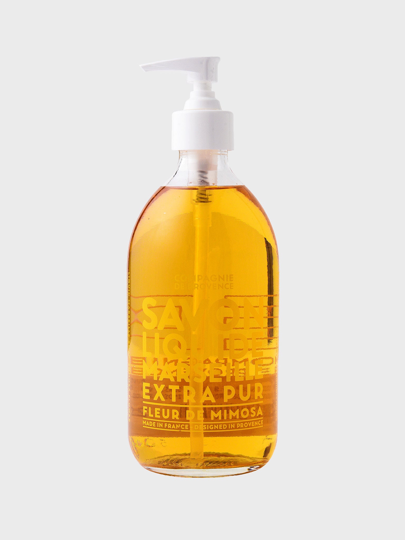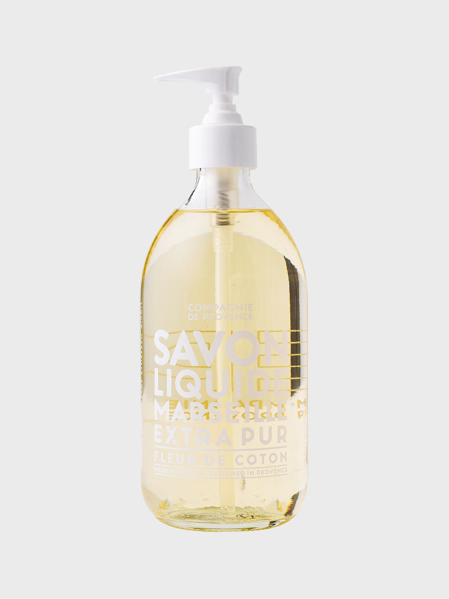 Gentle cleansing hand soap in a sleek and elegant glass bottle with a pump dispenser.