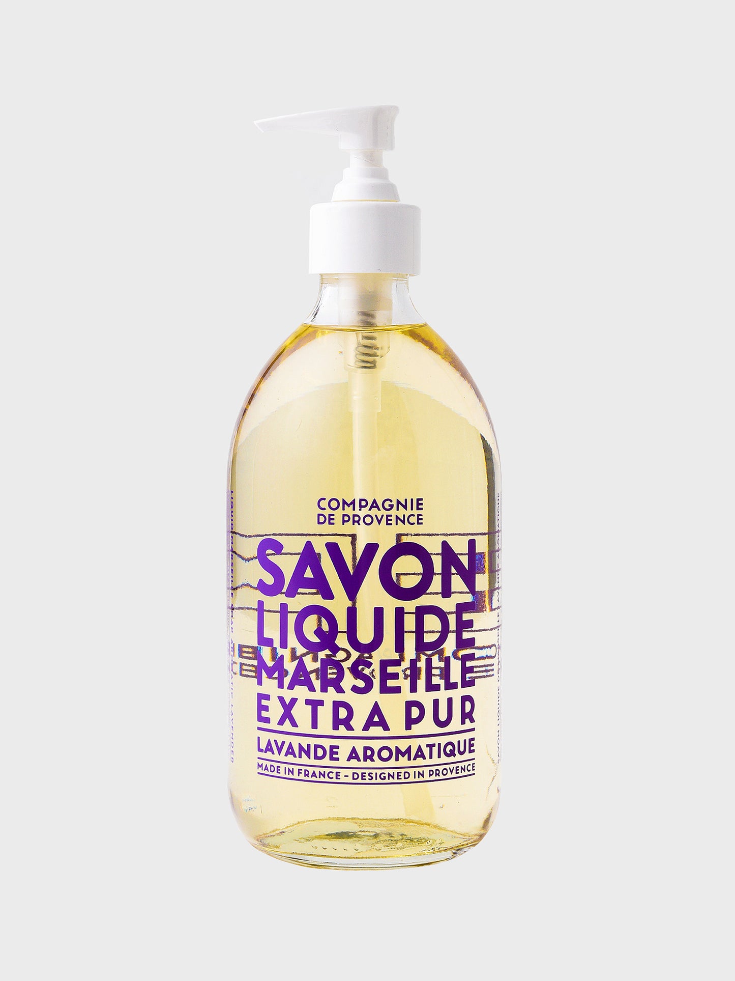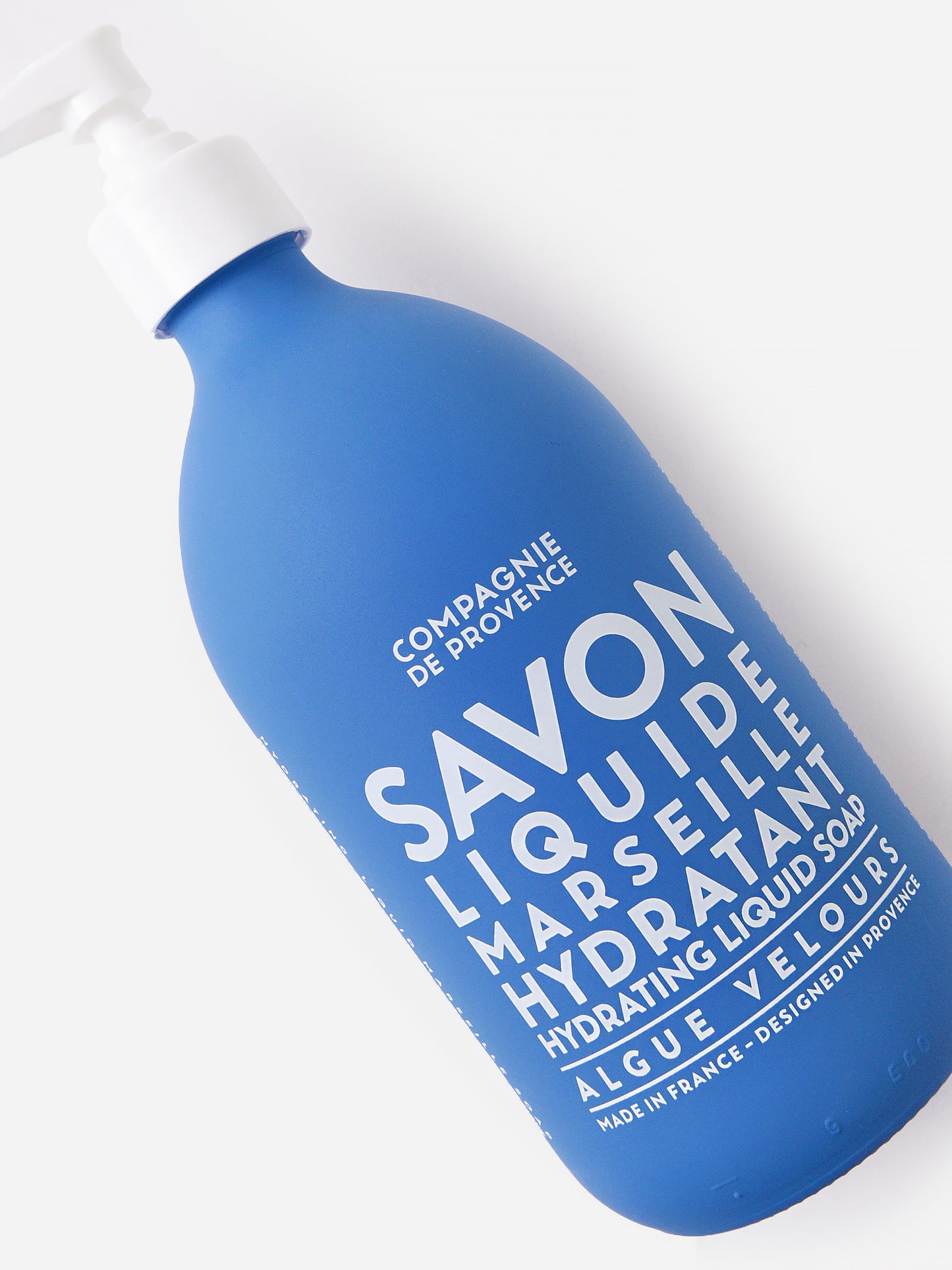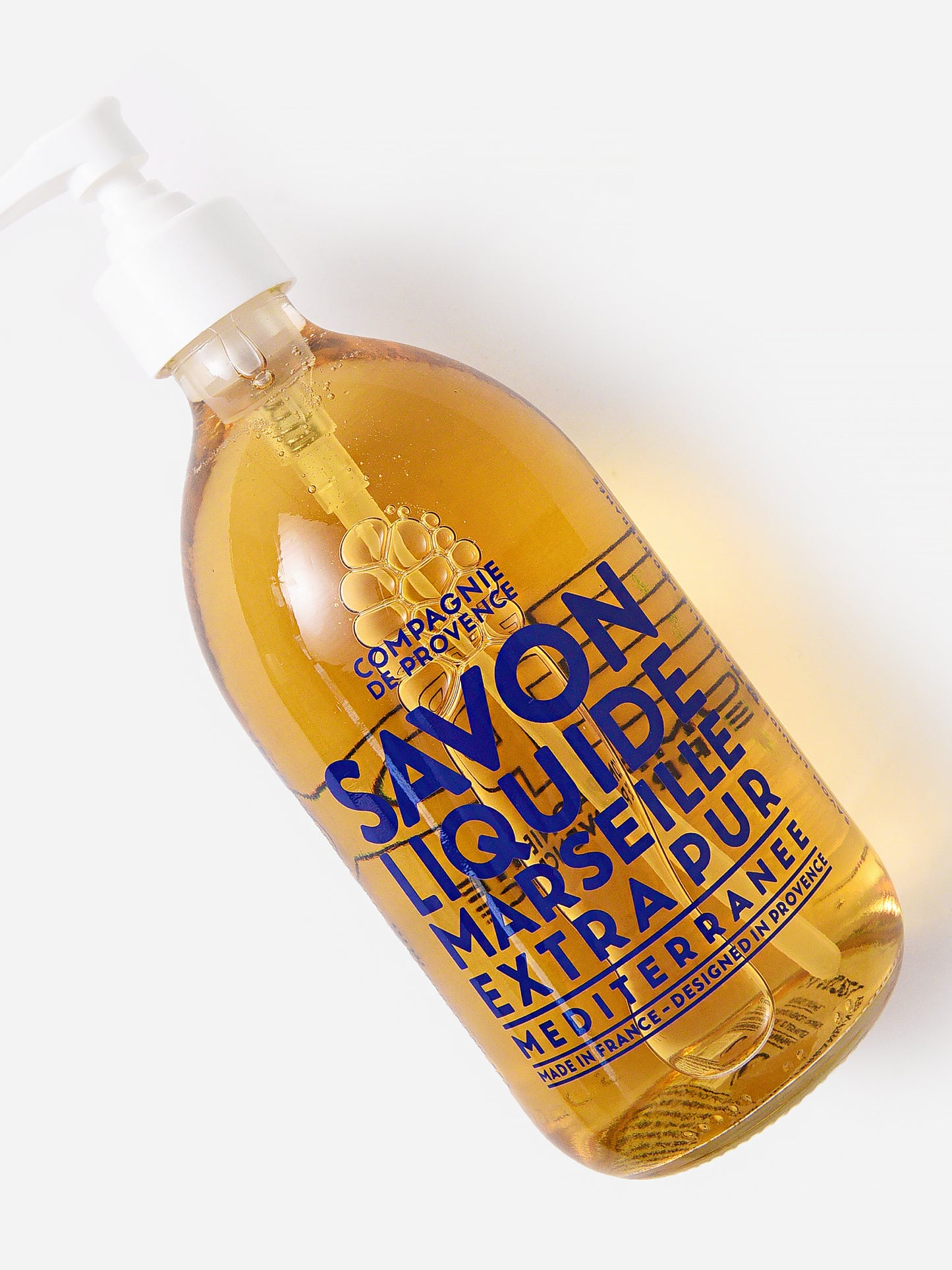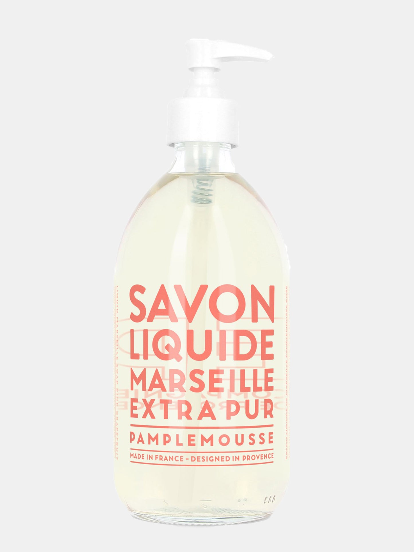 Gentle cleansing hand soap in a sleek and elegant glass bottle with a pump dispenser.
