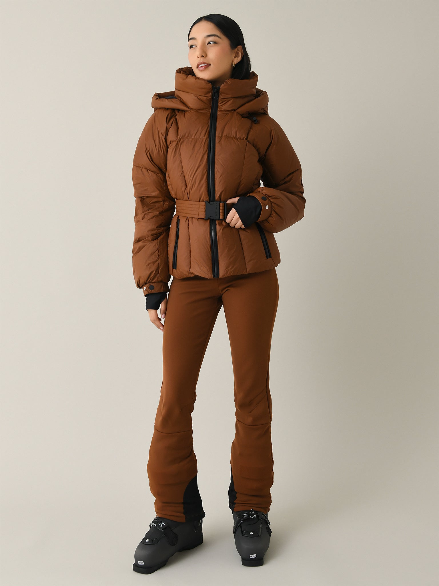 A soft matte jacket featuring a flattering belted waist and filled with RDS duck-down insulation.