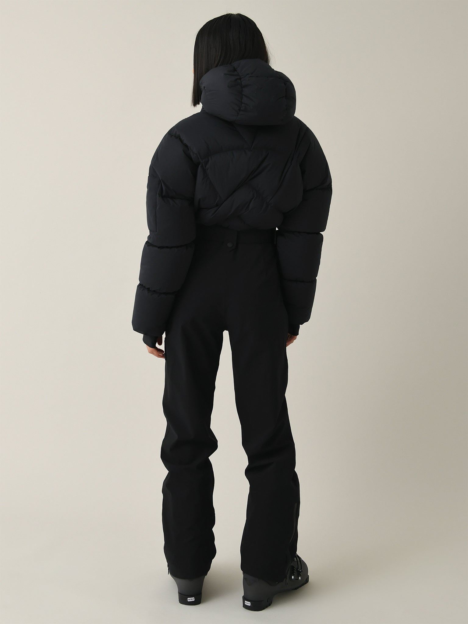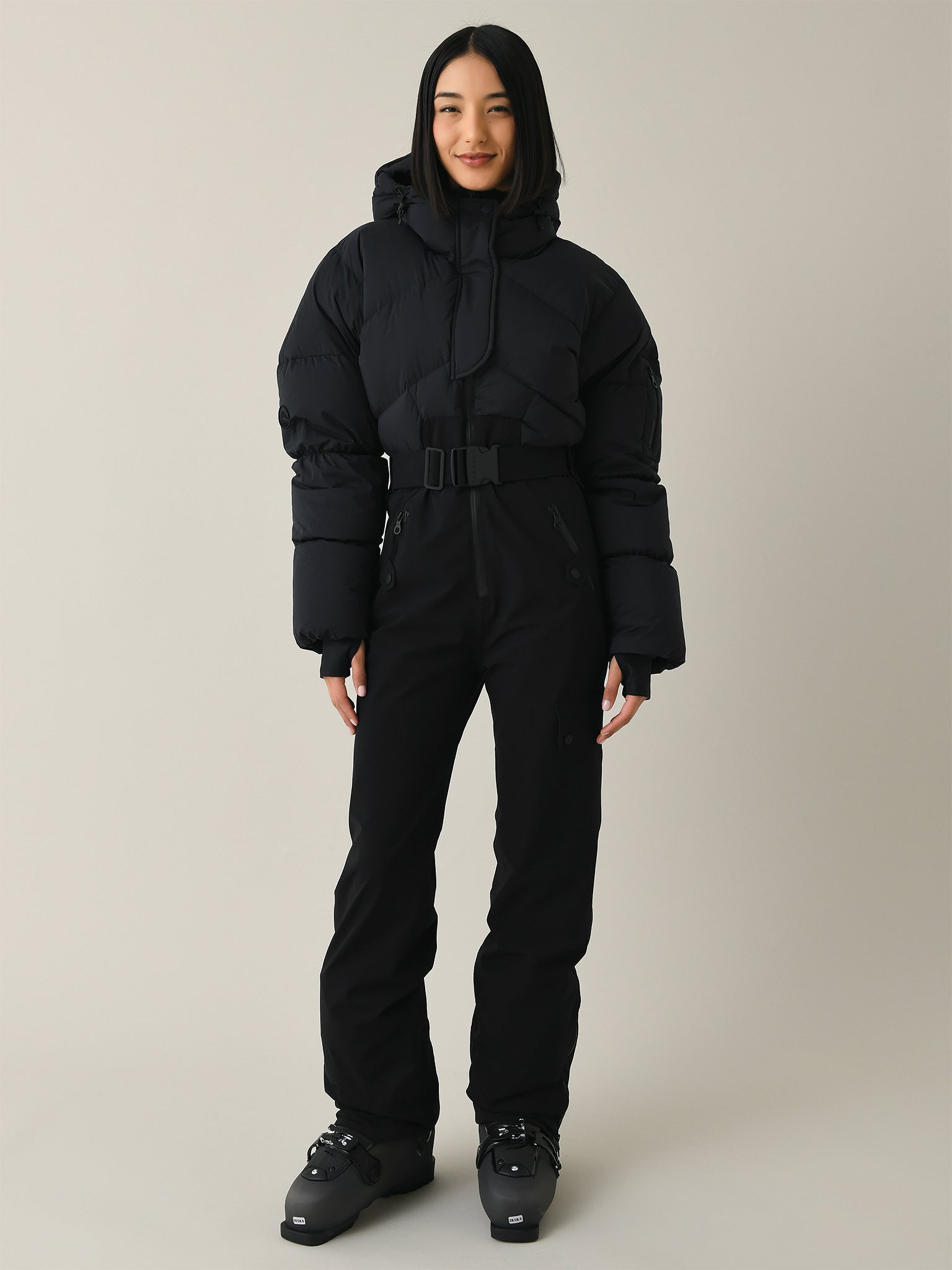 - Model is wearing size Small ski suit.