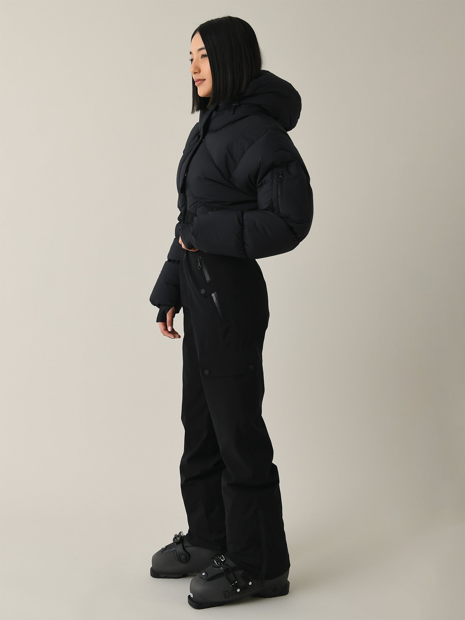 An all-weather ski suit featuring multiple large pockets and filled with responsibly duck-down insulation.