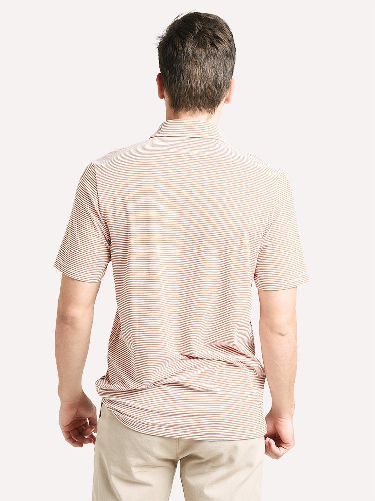 Take on the weekend in the Criquet Ace Polo, Pencil Stripe - Burnt Orange.