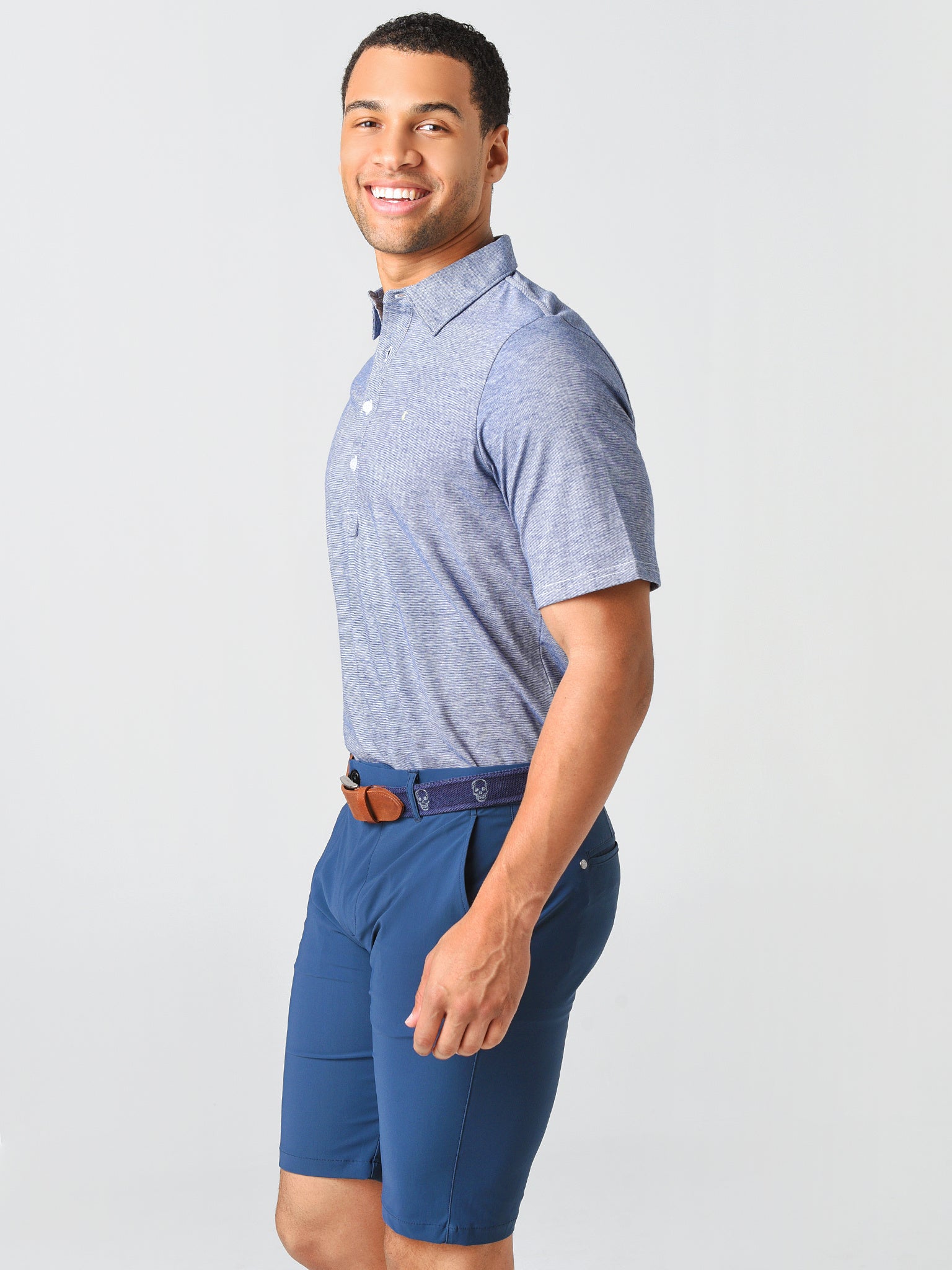- Model is wearing size Medium polo.