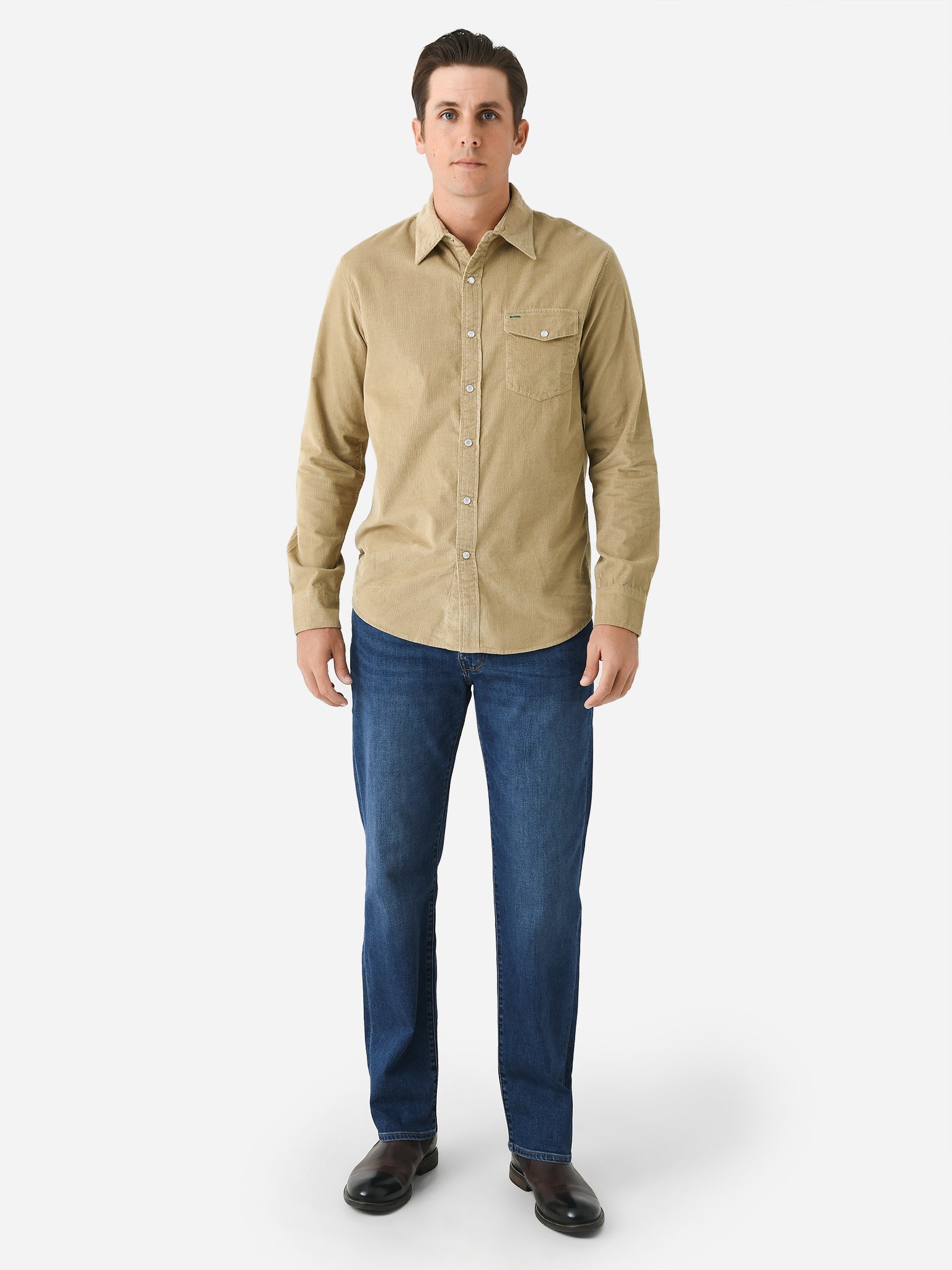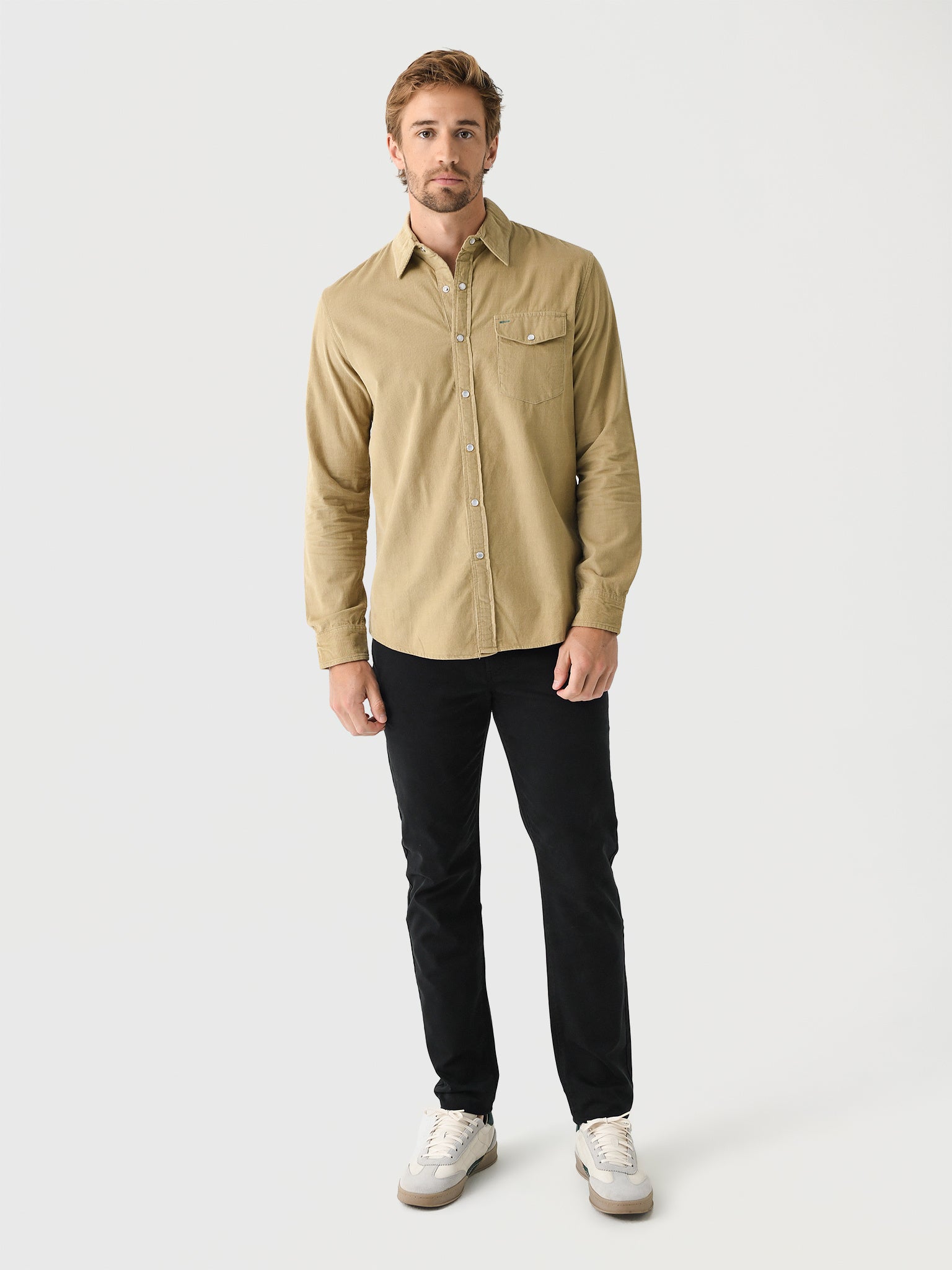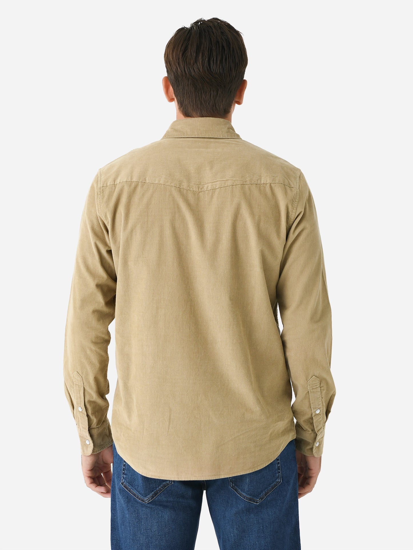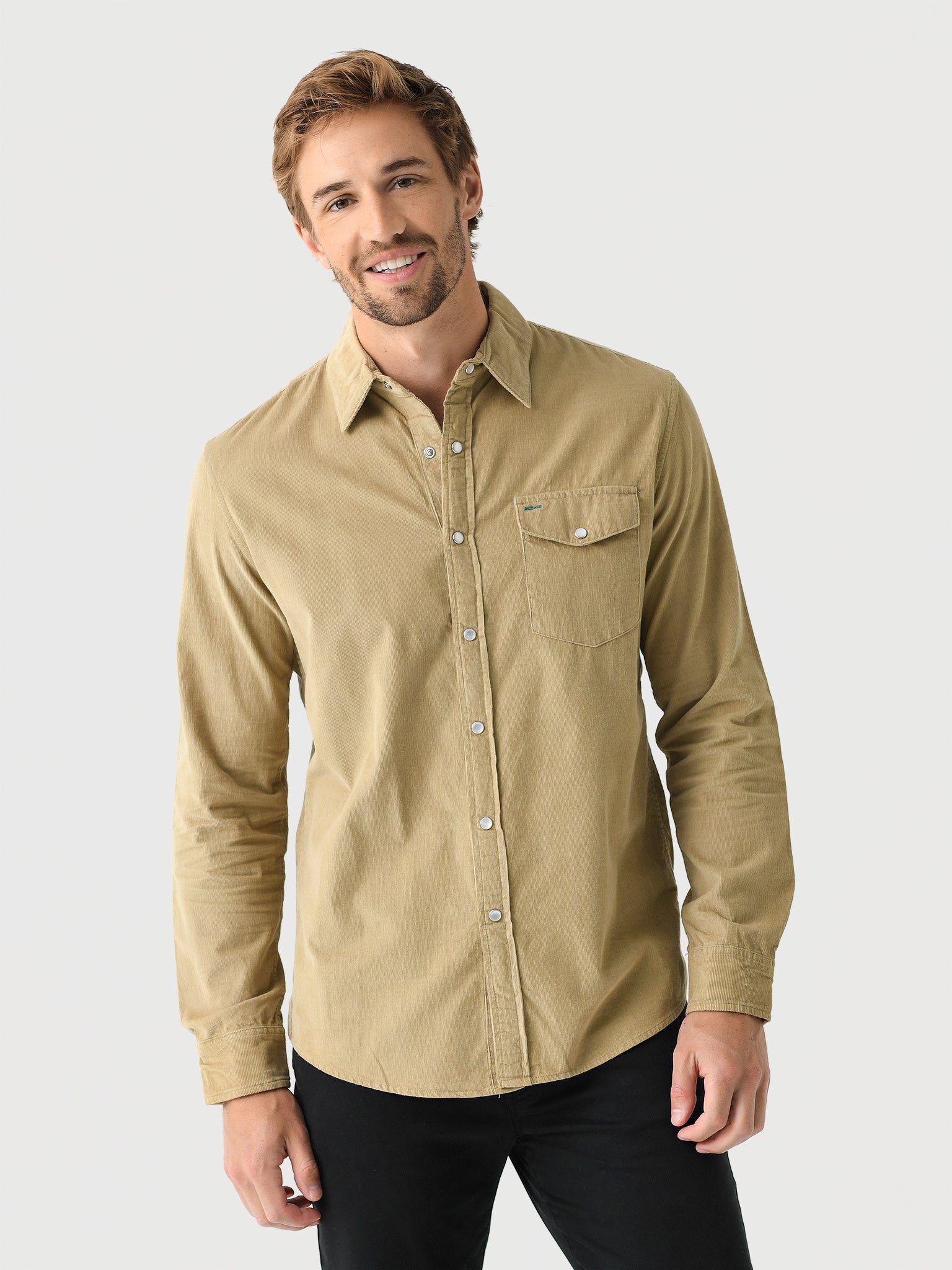 A casual button-down shirt with a western-inspired silhouette made from thin wale corduroy with pearl snap buttons.