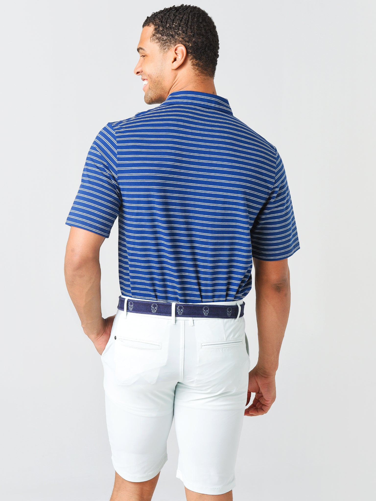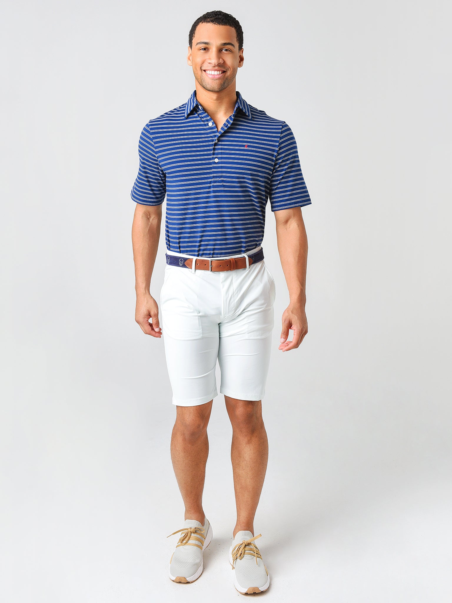 - Model is wearing size Medium polo.