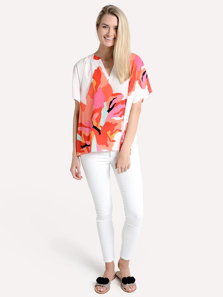 You ll feel effortlessly cool in the Maggie Top- a top seller year after year! From the beach to the office and everywhere in between, this top will add chic style to any outfit. This easy-to-wear oversized top and V-neck create a flattering silhouette for any age and body type and will have you wanting it in every color!