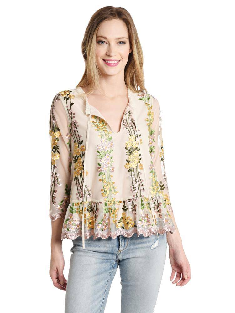 The Cupcakes And Cashmere Almeta Top features embroidered floral details for the Spring season.