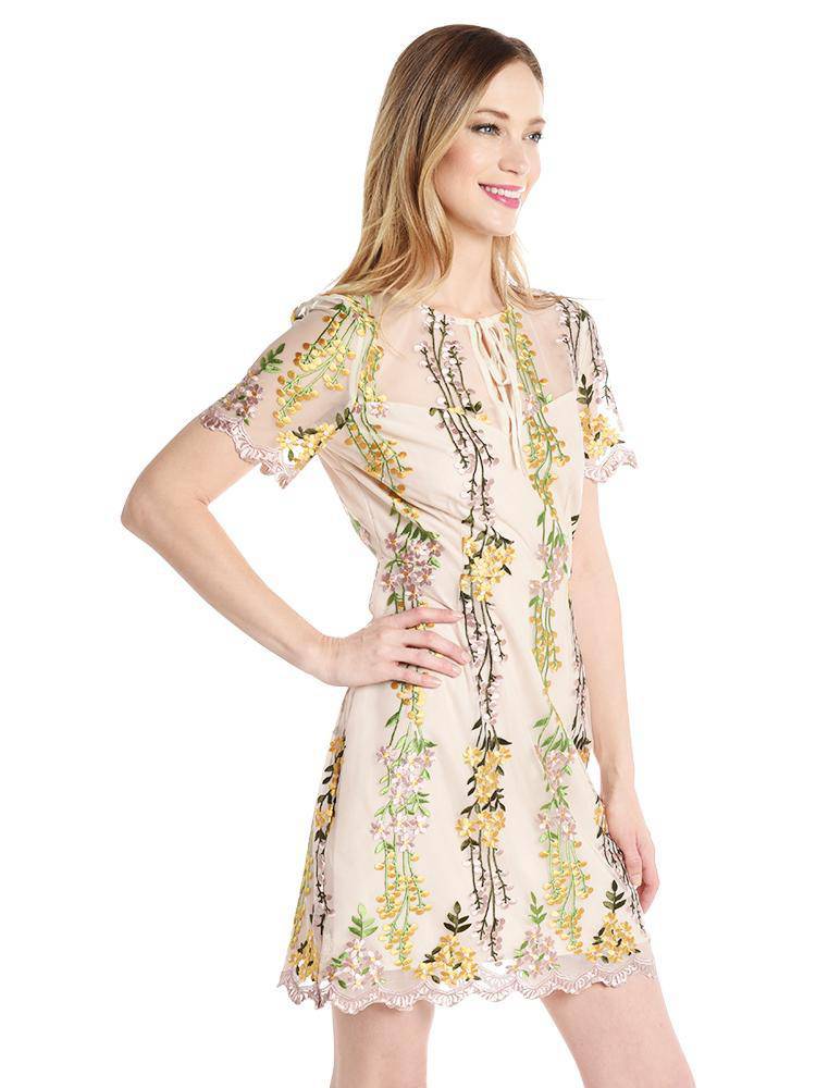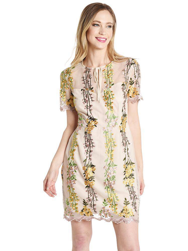 Get a sophisticated look for Spring in the Cupcakes And Cashmere Gram Dress, with embroidered floral details.