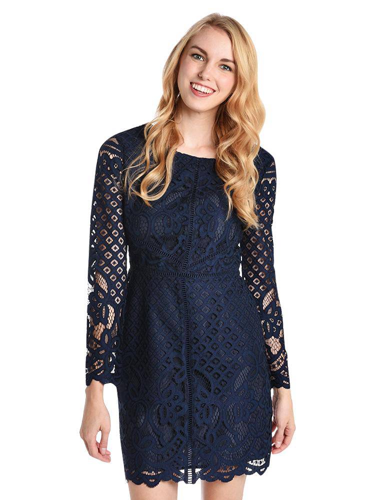 The Cupcakes and Cashmere Spence Dress has long sleeves with a feminine look.